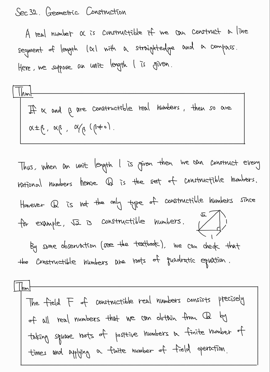 지금까지 공부한 extension field의 중요한 예시로서 작도가능성에 대해 공부한다.
