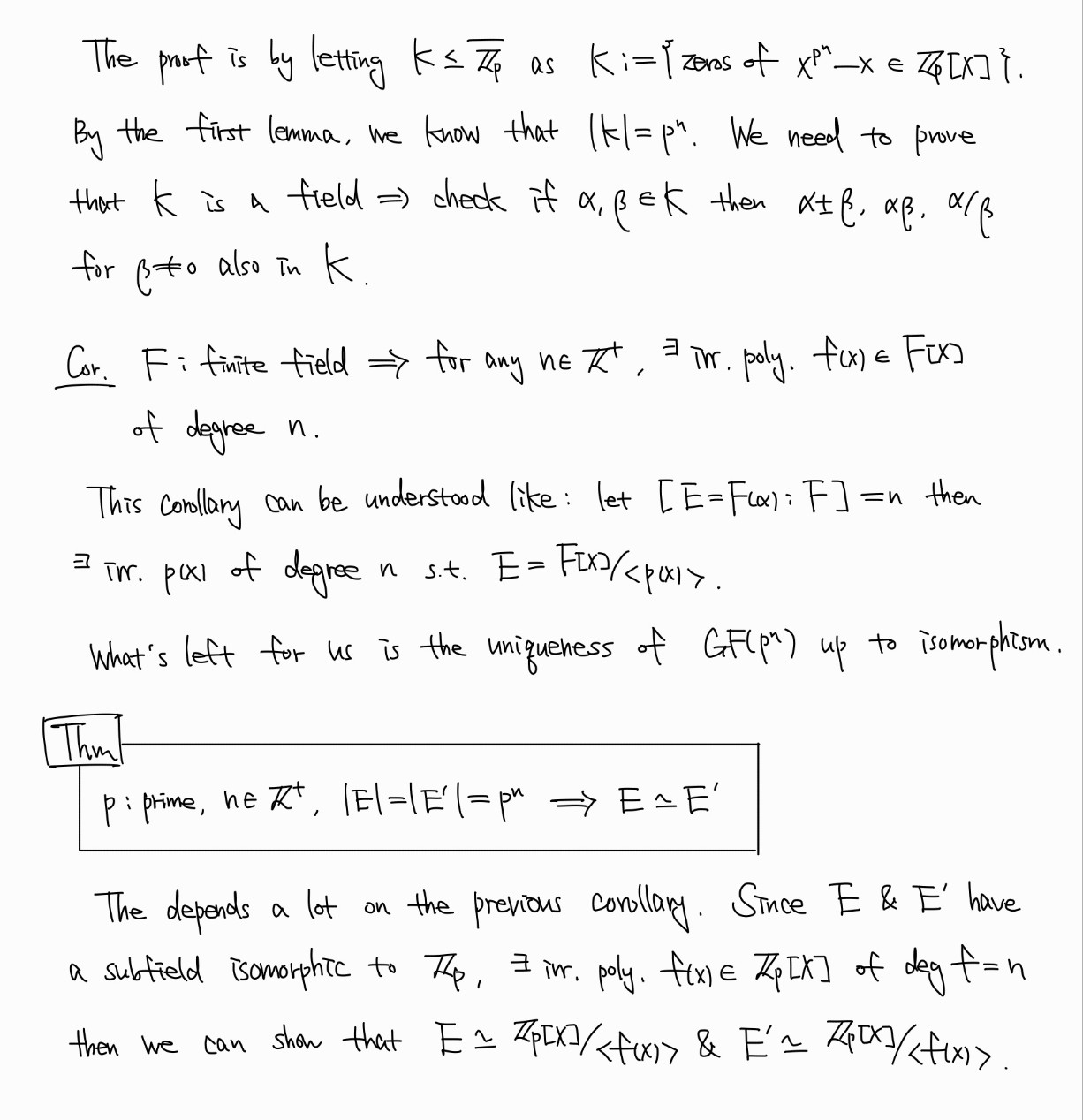 그리고 그러한 finite field는 isomorphism에 대해 유일함을 밝힌다.