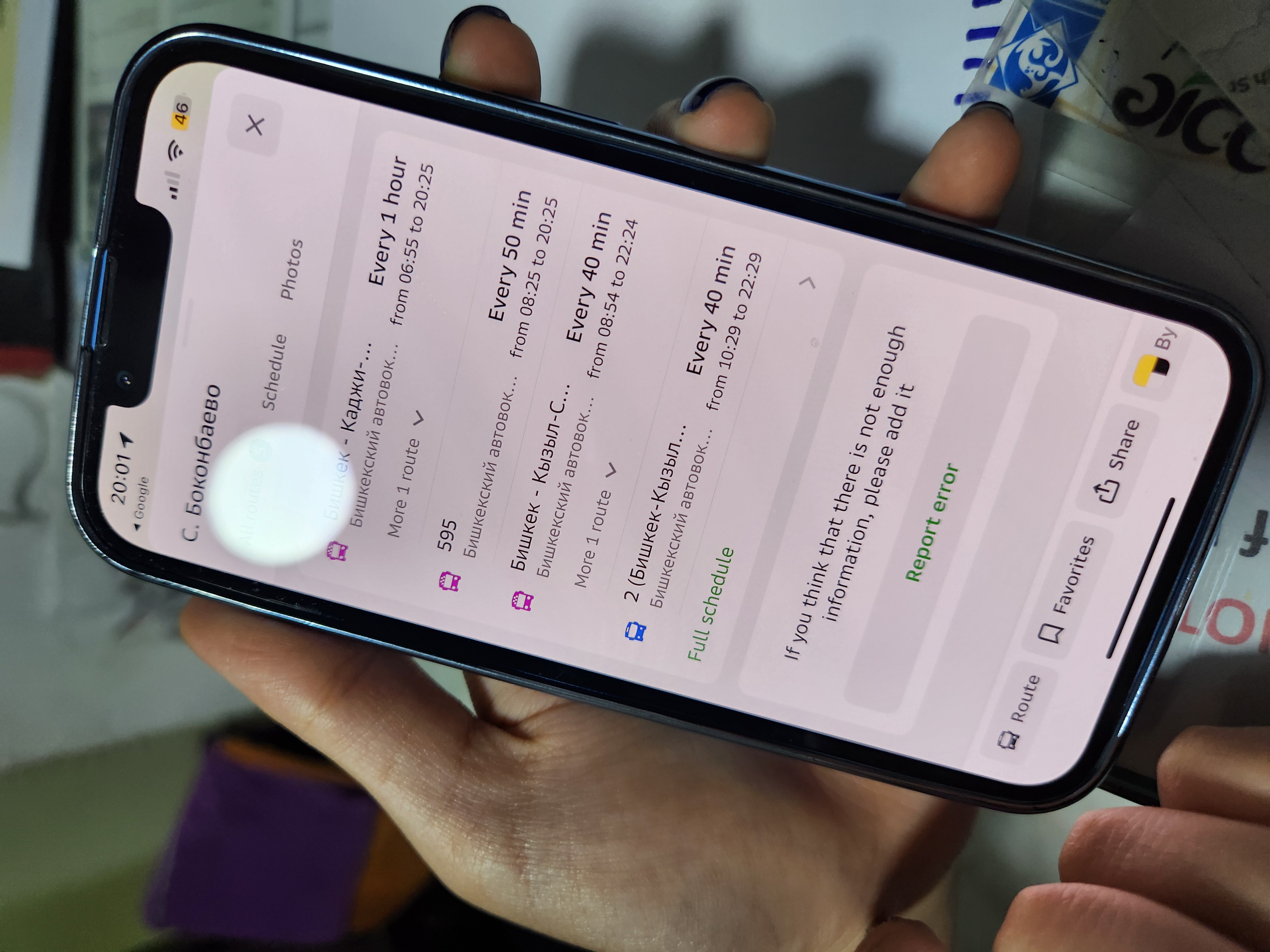 혹시 몰라 숙소 데스크에도 물어봤는데 터미널에서 보콘바예보 가는 595번 마슈르트카를 탈 수 있다고 했다. 8시 25분부터 운행한다니 7시 20분쯤 출발하면 여유를 가지고 탈 수 있을 것 같았다.