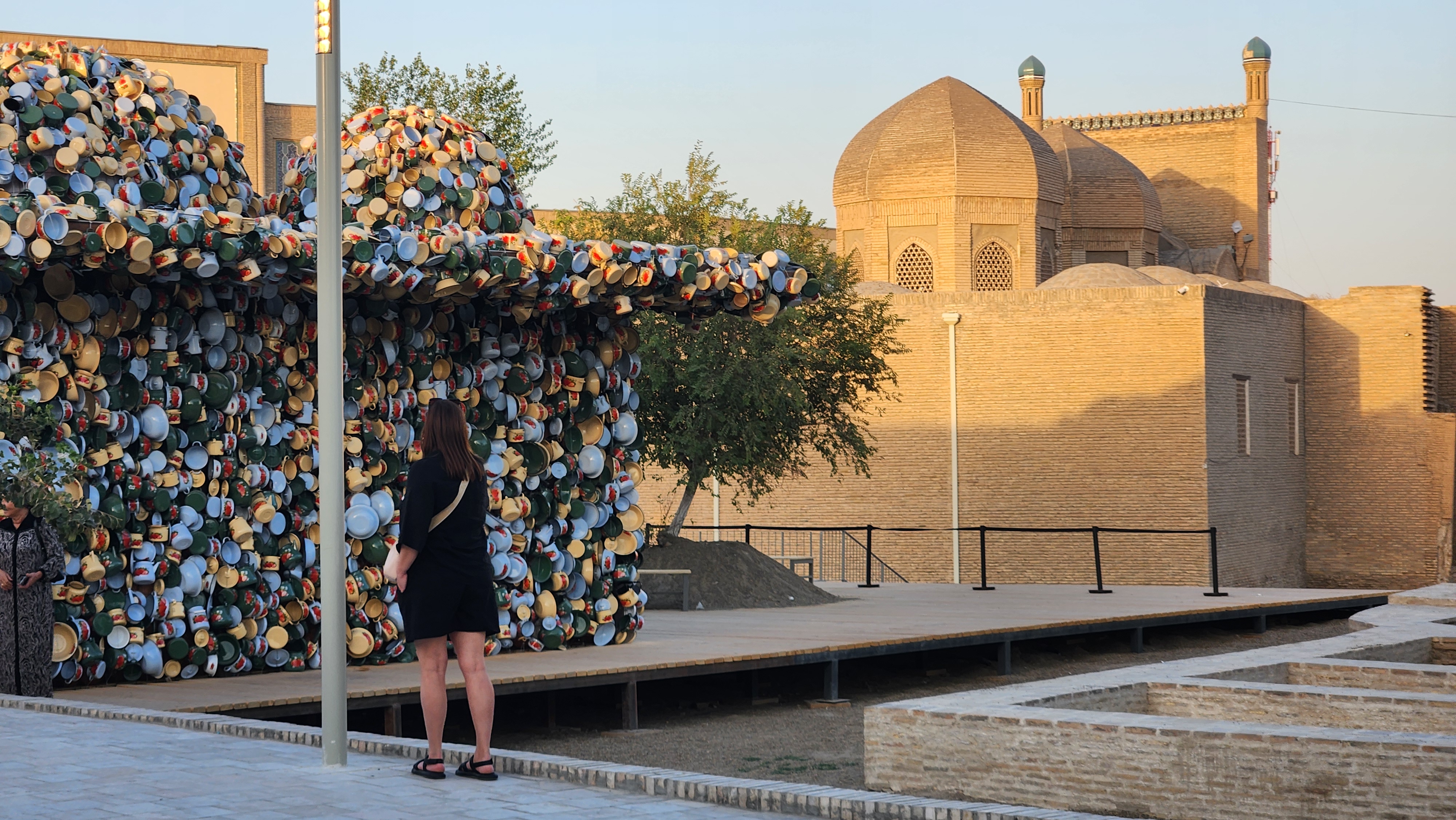 사마르칸트의 유적지는 서로서로 거리가 꽤 떨어져있고, 하나의 독립적인 유적이지 서로 연결된다는 느낌은 없었는데 부하라 구시가지는 시가지 전체가 하나의 유적인듯, 유적들 하나하나가 연결되어 있다는 느낌을 받았다. 마치 내가 정말 중세 실크로드의 도시에 들어와 있다는 느낌을 받을 수 있었다 - 물론 곳곳에 현대적 식당, 호텔, 상점이 있지만 거리를 걸을 때는 이런 느낌을 받을 수 있었다는 이야기다. 게다가 지금은 부하라 구시가지 전체를 배경으로 비엔날레가 진행 중이어서 시가지 곳곳에 예술작품이 전시되어 있는데, 이것 덕분에 분위기가 더 좋아진다.