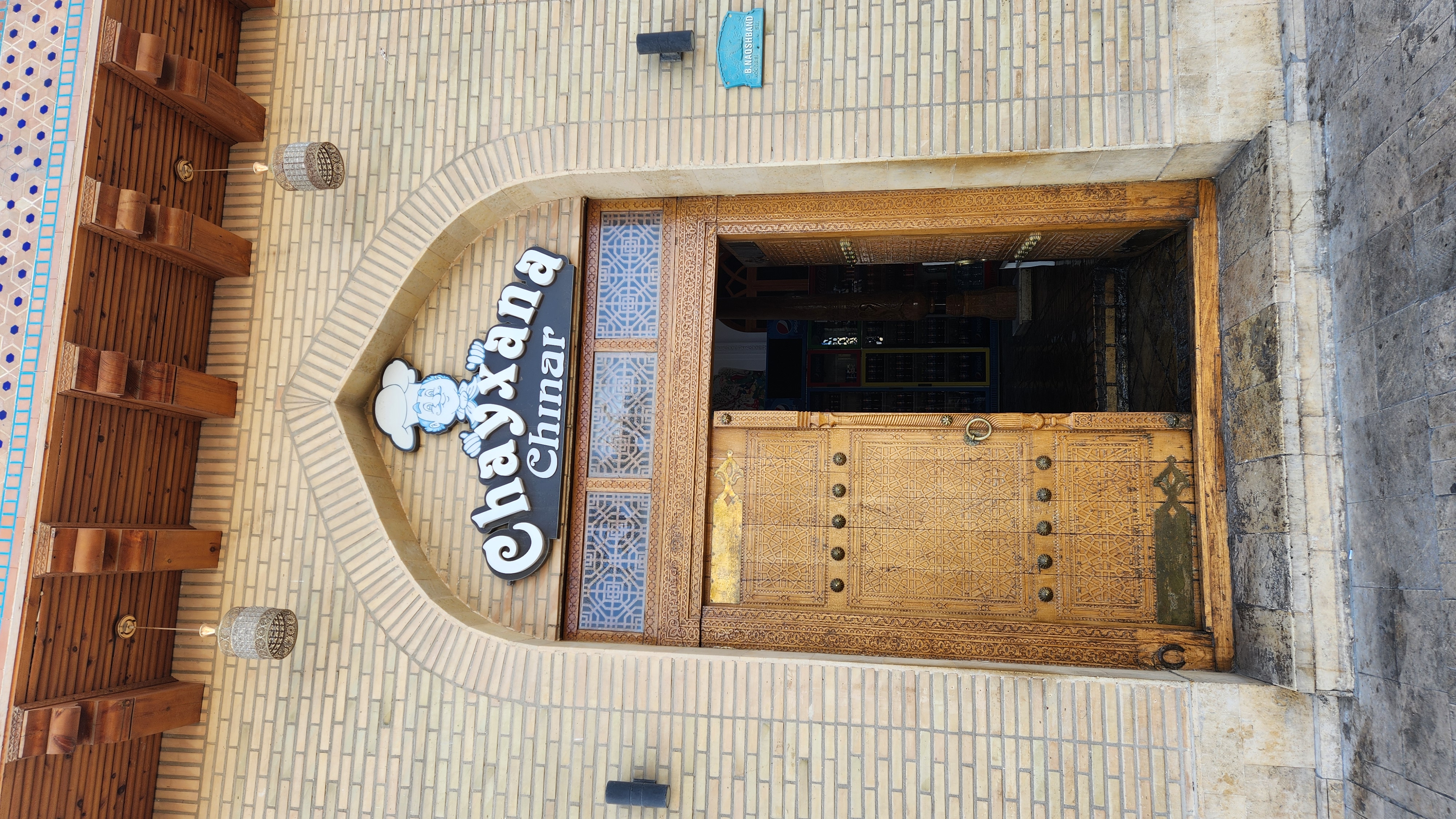 부하라에는 이런 식으로 유적지를 개조해서 식당이나 호텔로 사용하는 경우가 많다. 외벽은 그대로 두고 내부만 개조해서 사용하는 것 같은데, 사마르칸트의 유적지와는 전혀 다른 접근 방식이다. 사실 어차피 외벽도 그 때 그대로가 아니라 복원해서 새로 만든 것이니 이렇게 활용하는 것도 좋은 방법이라는 생각이 들었다.
