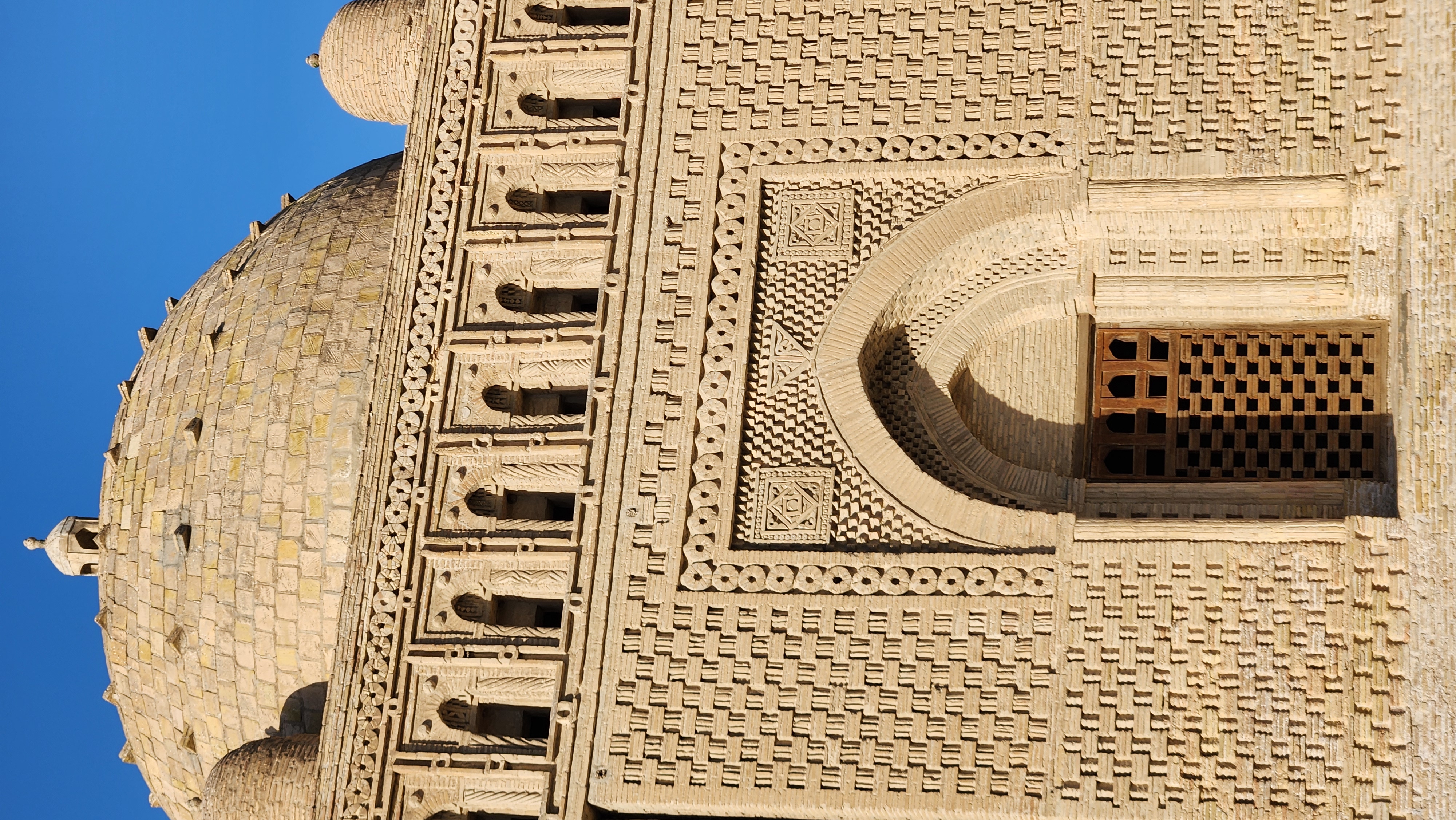 설명을 보니 소모니는 10세기 인물로, 바로 이 영묘가 이후 이슬람 영묘 건축의 기본이 되었다고 한다. 영묘는 칭기즈칸의 침공 때도 파괴되지 않았다고 하는데, 아름다움에 감명받아서가 아니라 진흙속에 파묻혀 발견하지 못해서라도 했다. 어떻게 이 거대한 건축물이 진흙속에 파묻혀 있을 수 있었을까?