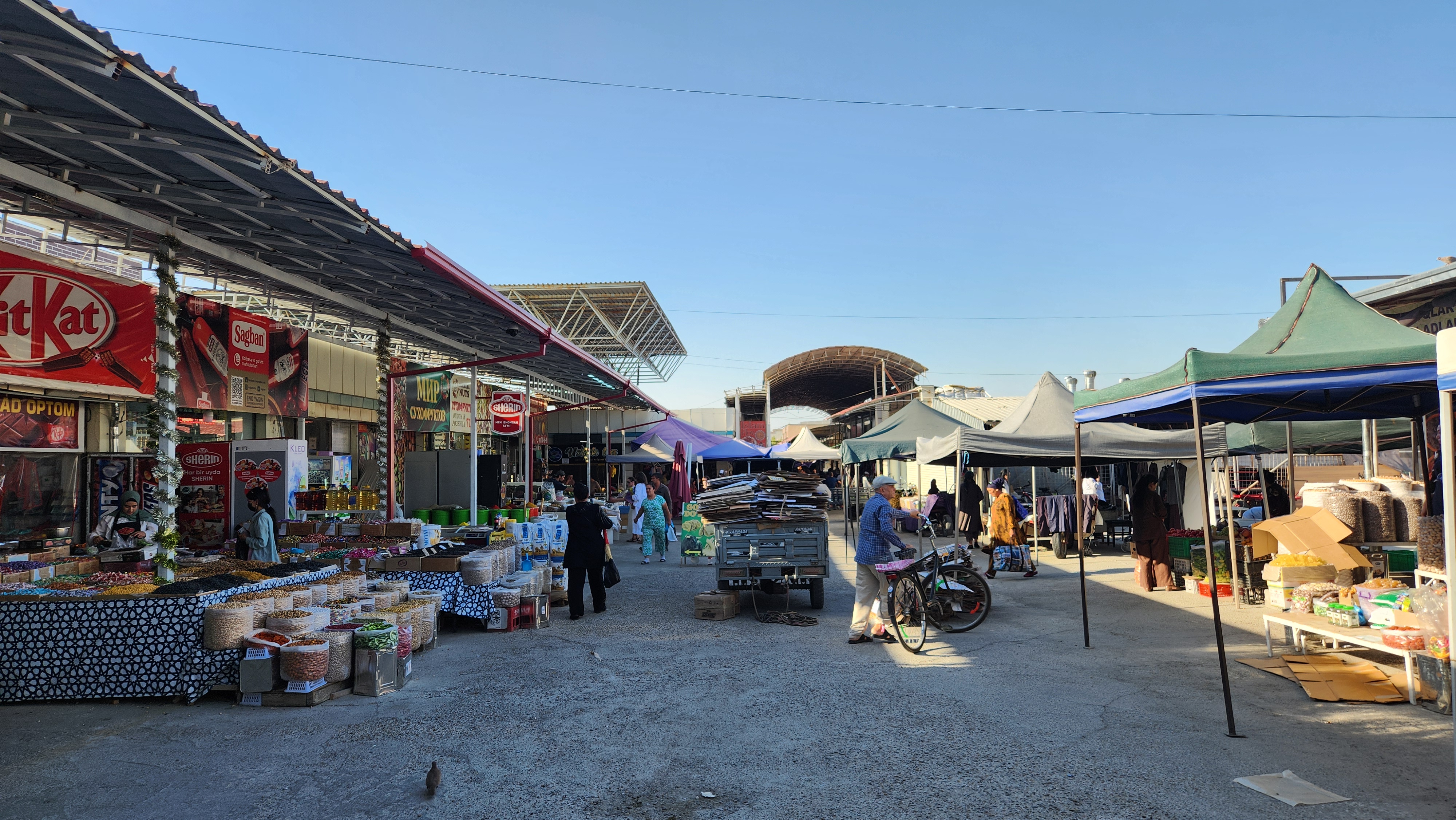 시장 바로 건너편에 거대한 쇼핑센터 같은 것이 있어 시장으로 가기 전에 가봤다. 그런데!! 걸어가다 파미르 엥겔스피크, 두샨베 버스터미널에서 만난 덴마크 형제를 또 만난거다. 그것도 길에서 우연히! 두 번은 몰라도 세 번이나 만나게 되어 정말 어이가 없고 웃겼다. 이 친구들도 엄청 웃으면서 왜 자기들 따라다니냐 그러고 이야기하다, 너무 인연이어서 인스타그램도 교환했다. 좀 있다가는 사마르칸트에서 부하라로 가는 기차 옆자리에 앉아있던 가족도 만나서 아버지와 아들과 악수도 하고... 하여튼 이곳은 돌아다니는 데가 다 비슷해서 그런지 만나는 사람을 여러 번 만나는 것 같다. 무척 신기했다.