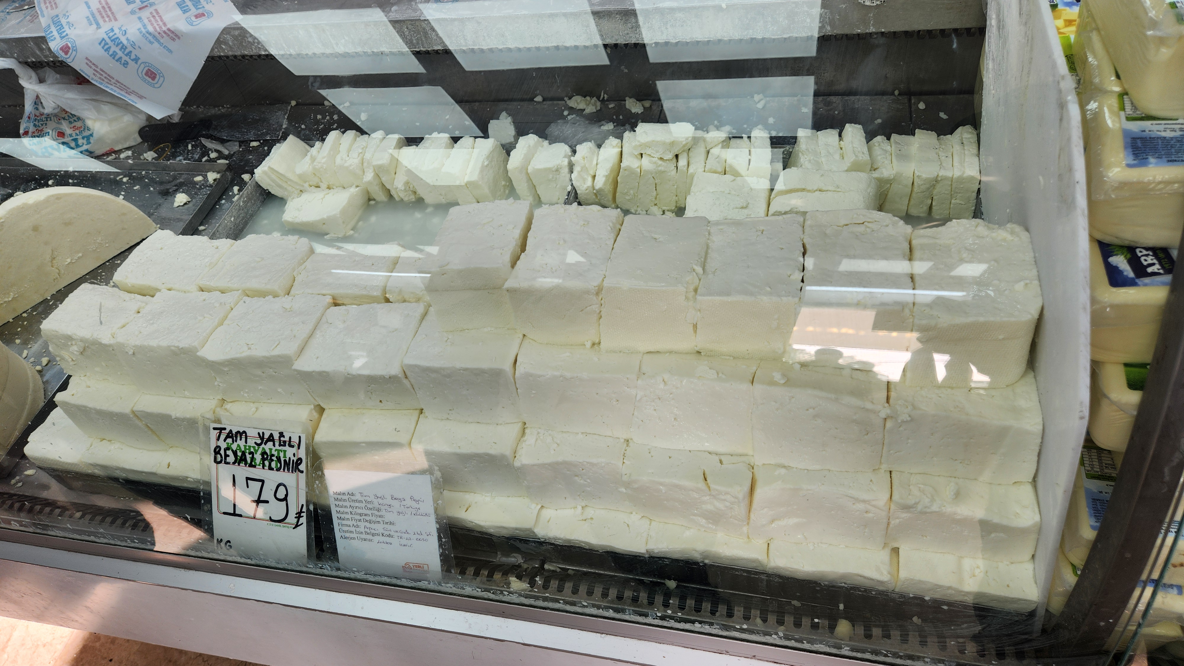 치즈가 맛있어보여서 저 뒤쪽에 있는 조그마한 블럭 두 개를 샀는데 겨우 50리라밖에 안했다. 마트에서 사는 것보다 훨씬 저렴하다. 이날 저녁이랑 다음날 아침에 한 덩이씩 먹었는데, 조금 짭잘한 모짜렐라 치즈같은 맛이었다. 맛있다 맛있어.