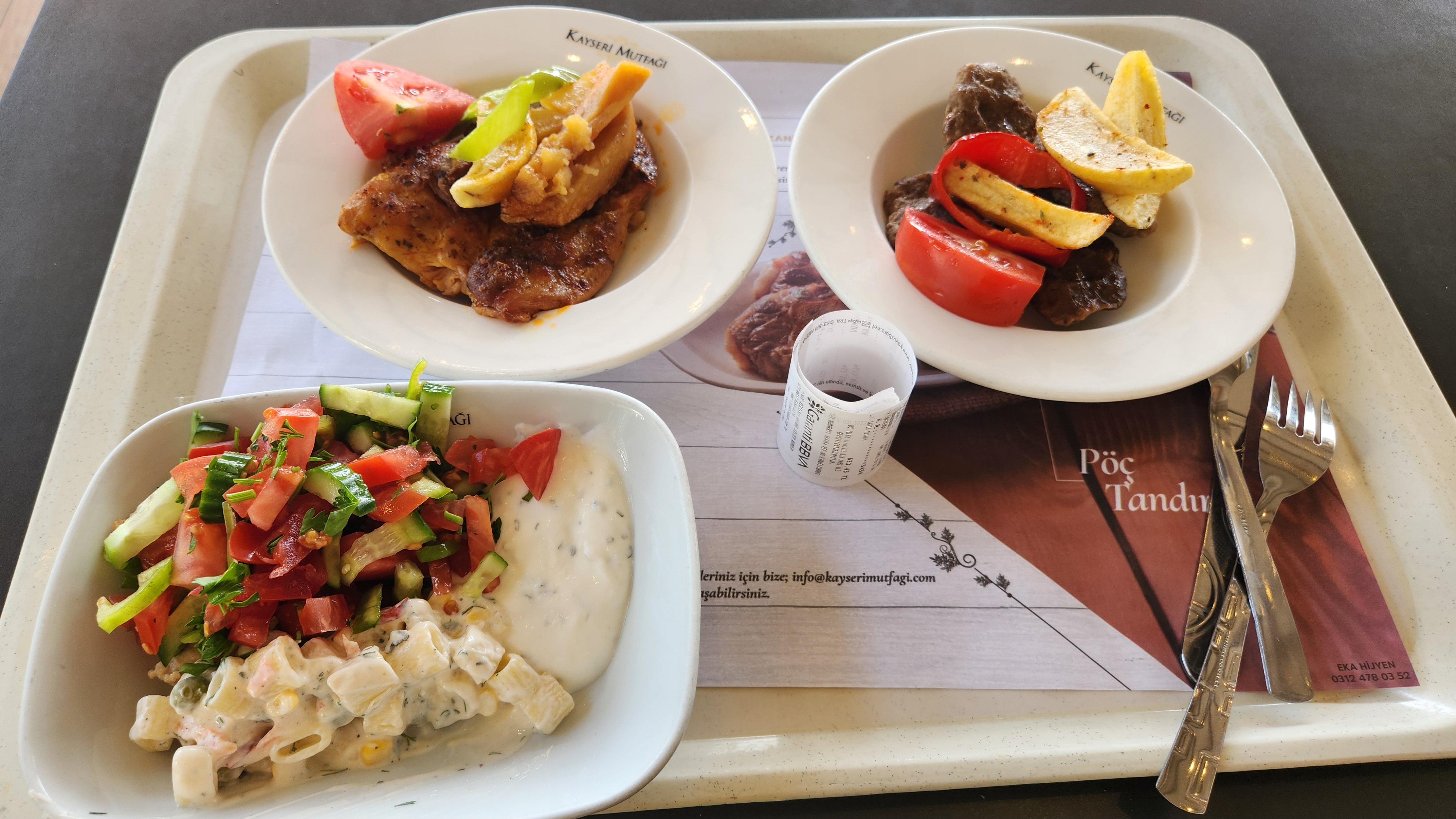 생각보다 너무 비쌌다. 이게 640리라니까 23000원 정도... 가격 물어보고 시킬걸 후회했다. 그리고 이미 조리된 음식을 바로 받아온거라 별로 맛이 없었다. 쾨프테가 맛있다고 했는데 떡갈비하고는 비교조차 실례다. 게다가 몸 상태도 안좋아서 더 맛없게 느껴졌을지도.
