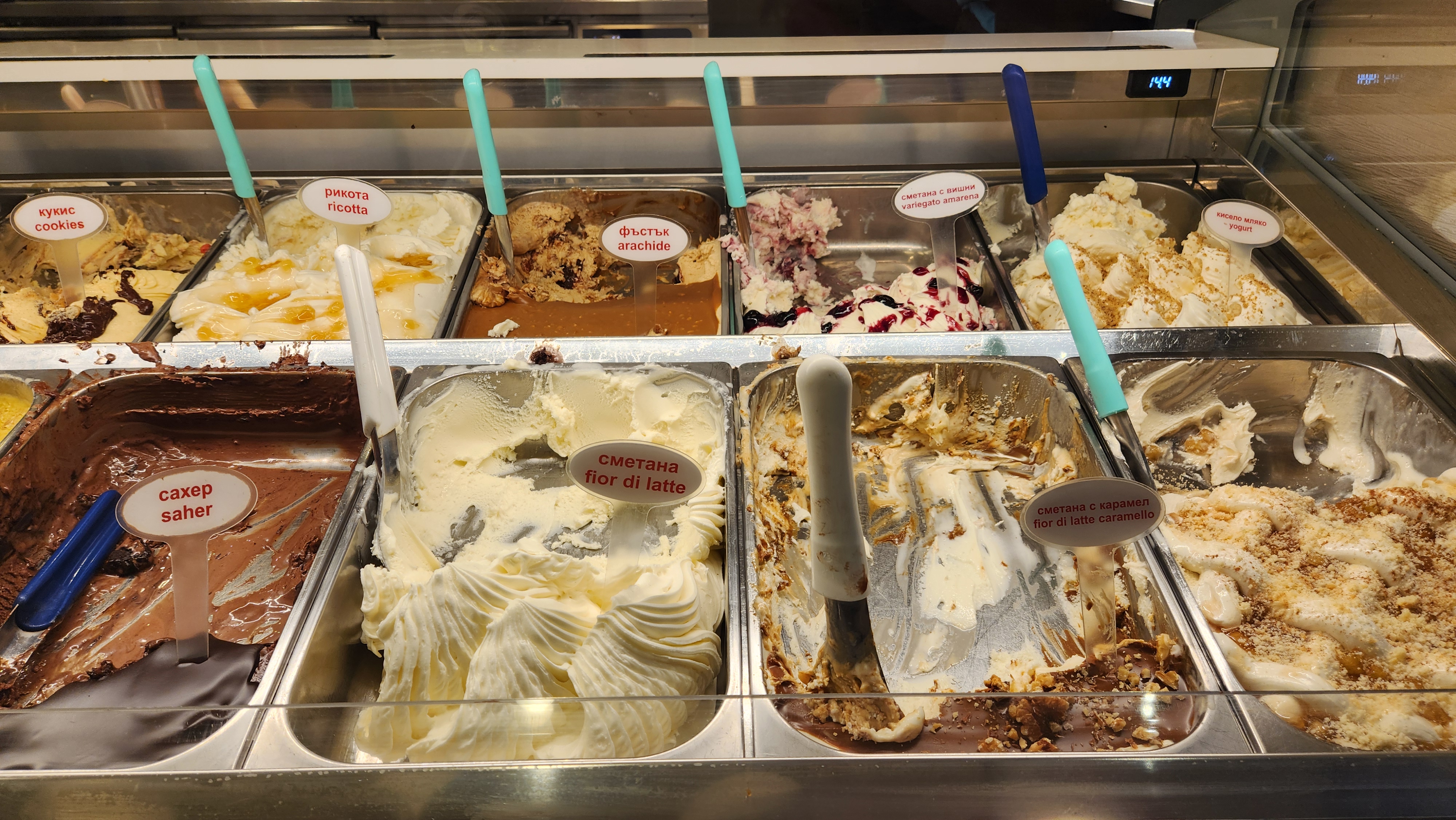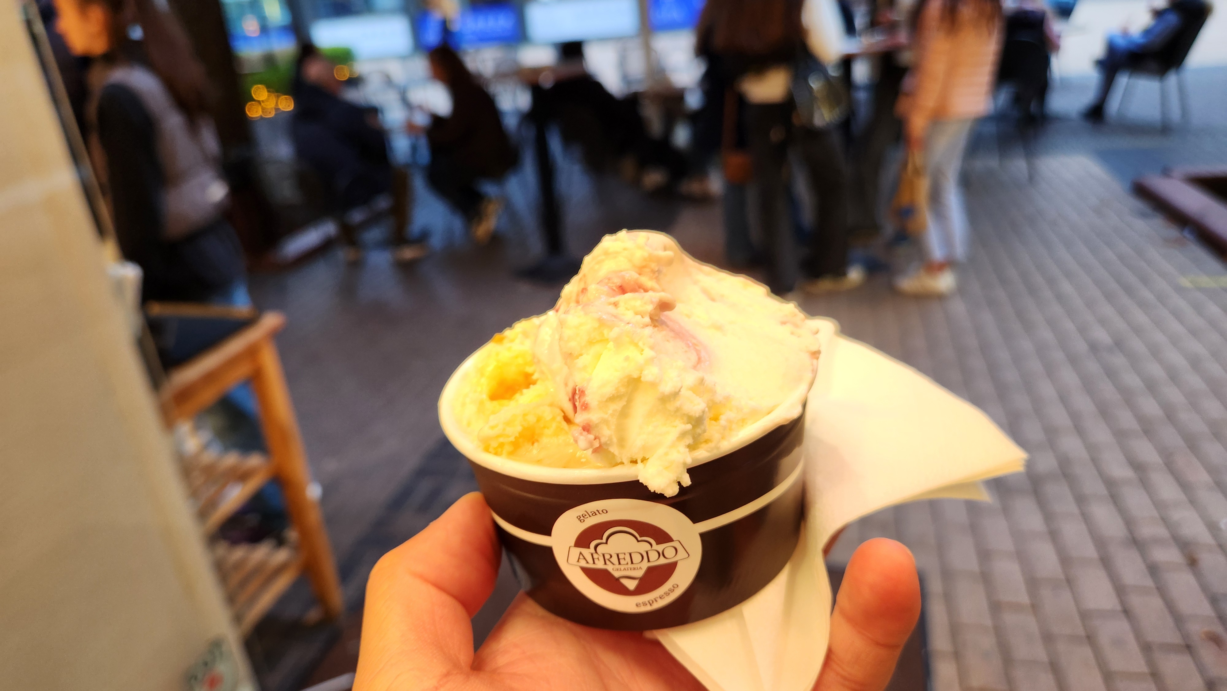 두 가지 맛 150그램에 5.2레프라 생각보다 너무 쌌다. 뭘 먹을까 고민하다가 맛 하나를 물어봤는데, 직원이 정말 크게 맛보기 스푼을 줬다. 그것도 맛있었는데 이미 먹었으니 다른 맛으로 두 개 시켰다 ㅋㅋㅋ