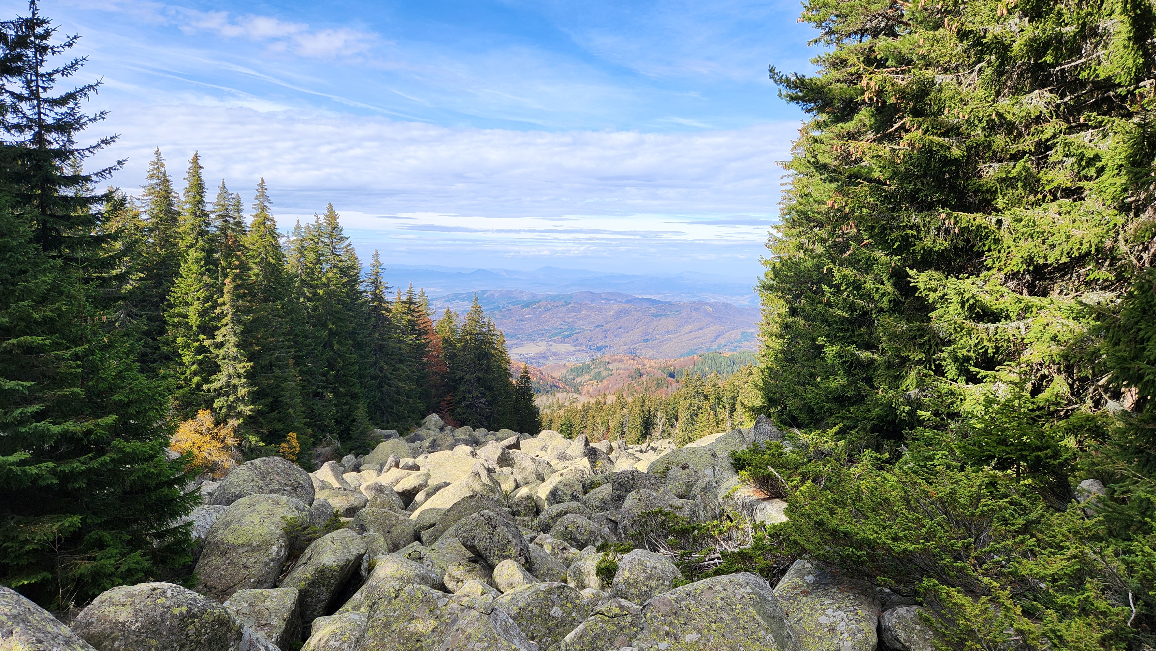중앙아시아에서 3000미터가 넘는, 길도 제대로 정비되지 않은 고산들을 오르다보니 길이 나있는 불가리아의 산은 쉬웠다. 버스가 내려준 곳은 해발1300미터 정도이고, 거기서 해발1850미터 정도까지 올라갔다. 길은 위 사진처럼 일단 포장은 되어있는데, 그 후 정비를 안 한건지 가끔 진흙밭에 신발이 푹 들어가거나 길 한가운데에 나무가 쓰러져 있는 경우가 많았다. 시에서 등산로를 정비를 하는 것 같지는 않았다. 나무 쓰러진거야 돌아가면 되는데 진흙밭이 넓게 펼쳐져 있는건 진짜 난감했다. 몇 번 넘어질 뻔하기도 했다. 넘어졌으면 진짜...