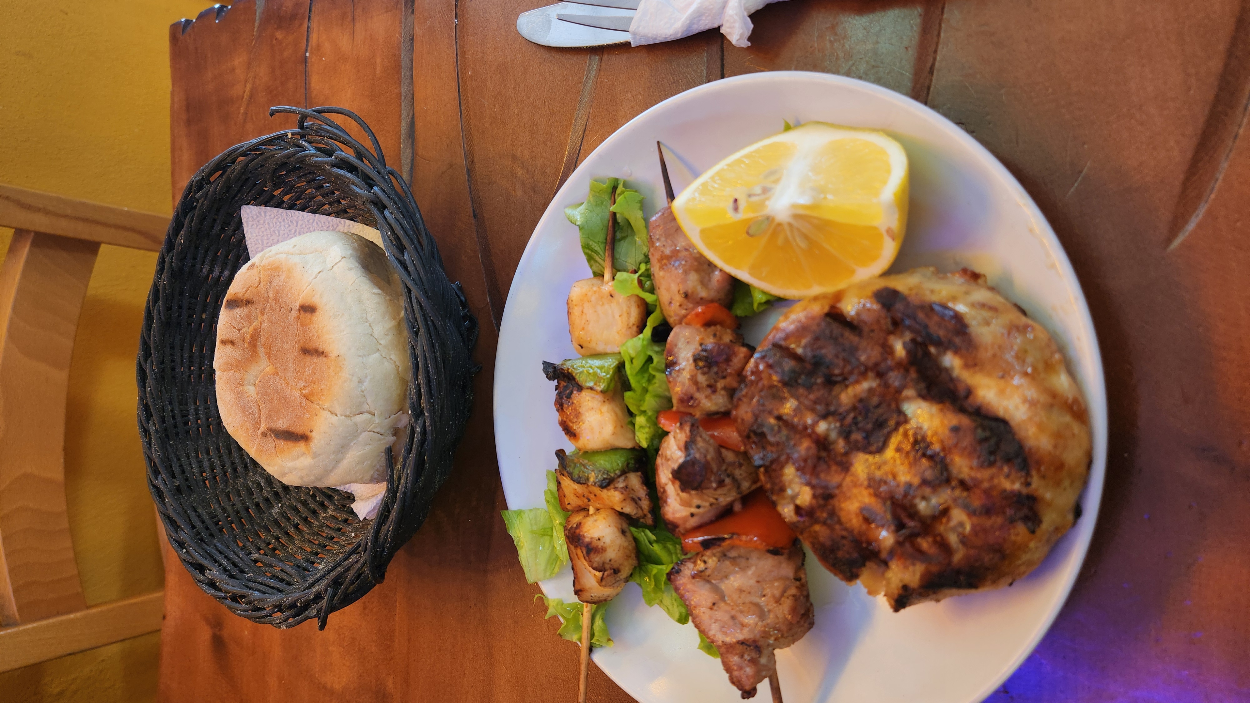닭가슴살은 그냥 닭가슴살 맛인데, 저 쵸프테가 엄청 맛있었다. 숯불에다가 구운 맛이 제대로 나고 기름진 고기맛이 훌륭했다.