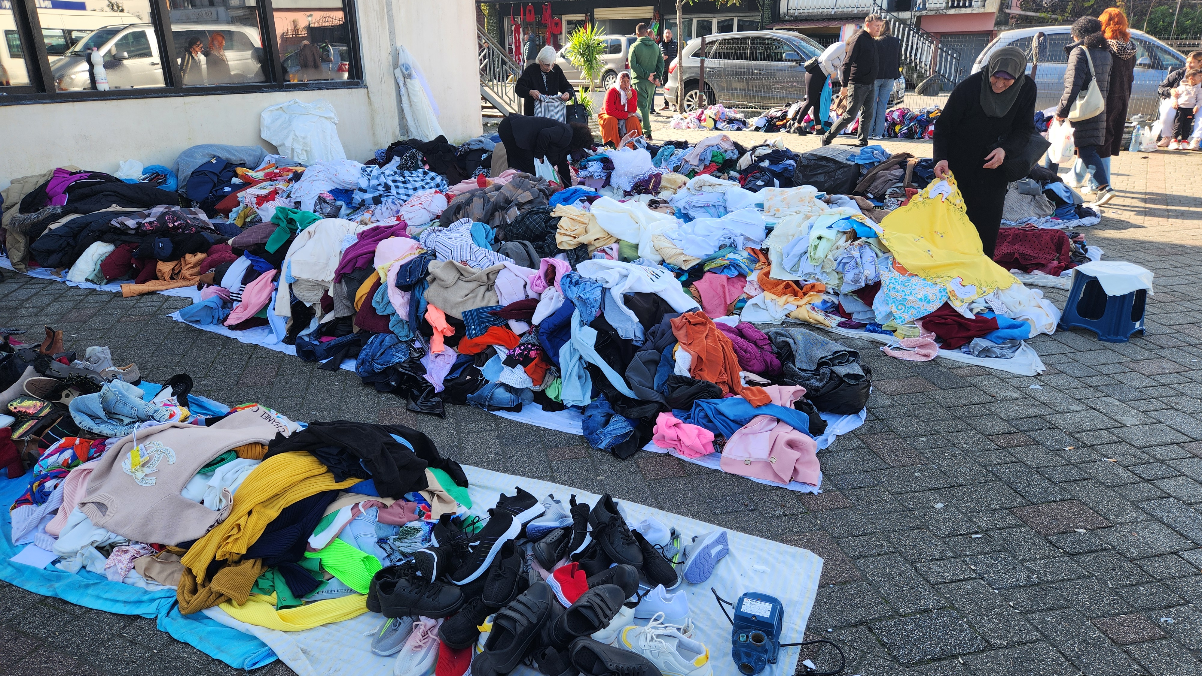 조금 더 걸어가니 마치 거리에 옷을 쌓아두고 집어가는 풍경이 나왔다.