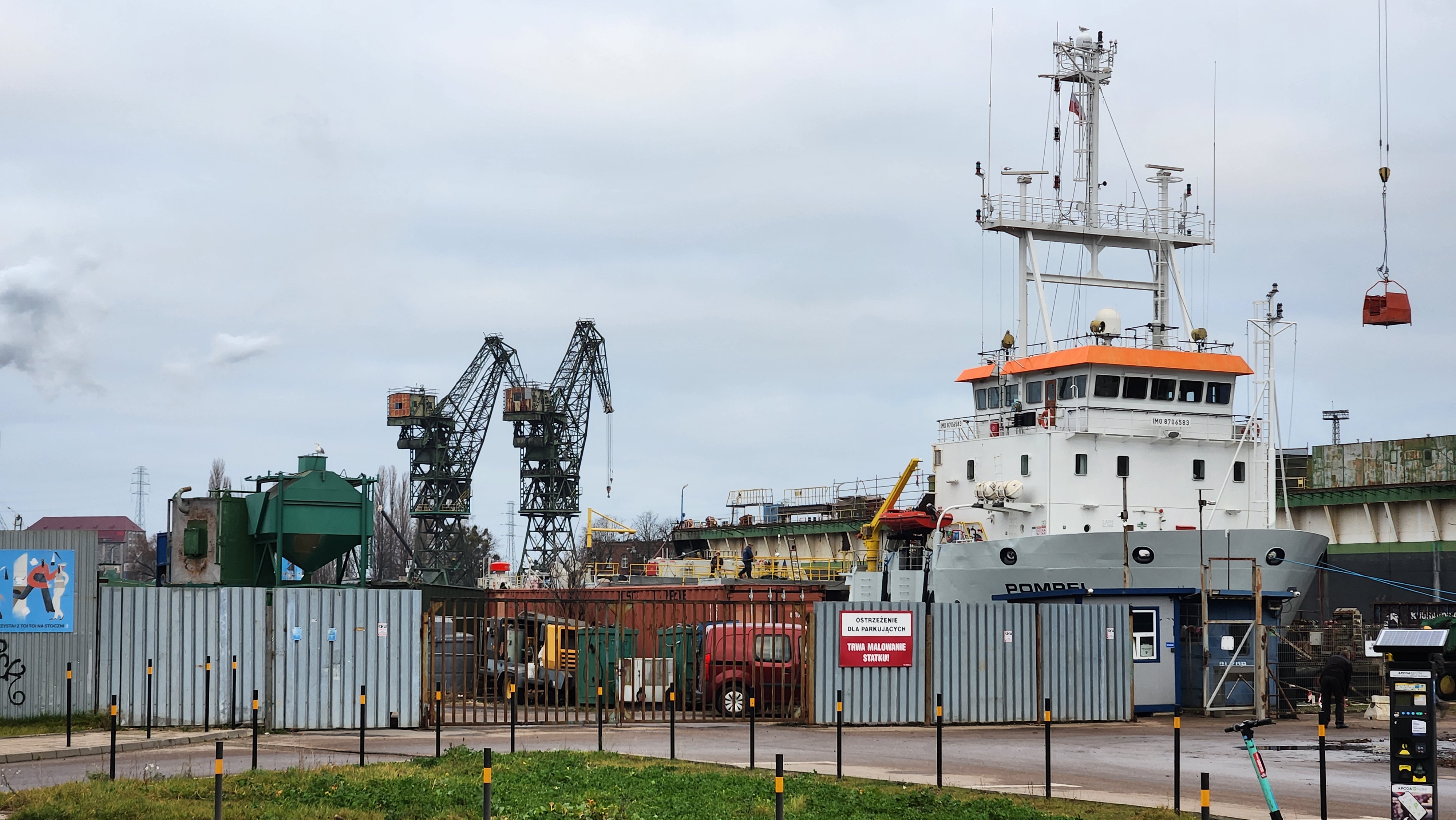 지도에서 빨간색으로 체크한 곳이 내 숙소였고, 파란색 원으로 표시된 곳이 그단스크 올드타운이다. 올드타운으로 가기 전 숙소 근처의 조선소를 둘러보고 갈 생각이었다. 조선소는 보통 국가중요시설이라 근처에서 사진 촬영이 금지되고 경비가 삼엄한 것 같은데, 구글 리뷰를 살펴보니 조선소 곳곳을 찍어둔 포토리뷰가 많아서 여기는 괜찮나보다, 생각하고 구경을 갔다.