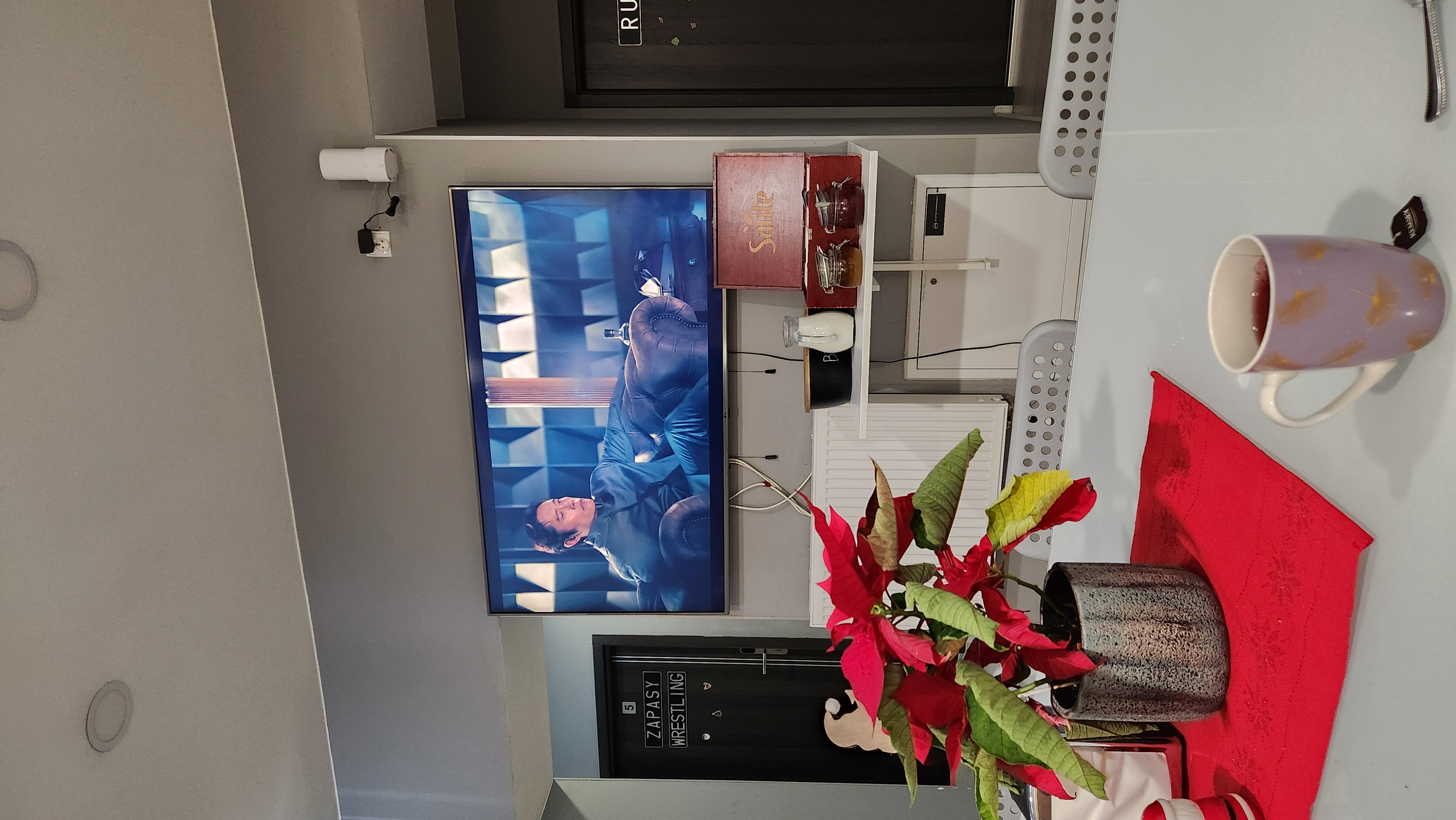 다음날 아침 일어나 8시 반에 제공되는 조식을 기다렸다. 조식 먹고 바로 나가려고 준비 다 해놓고 주방으로 가서 차를 마시려는데, 우락부락하게 생긴 아저씨 한 명이 오징어게임3를 틀어놓고 보고 있었다.