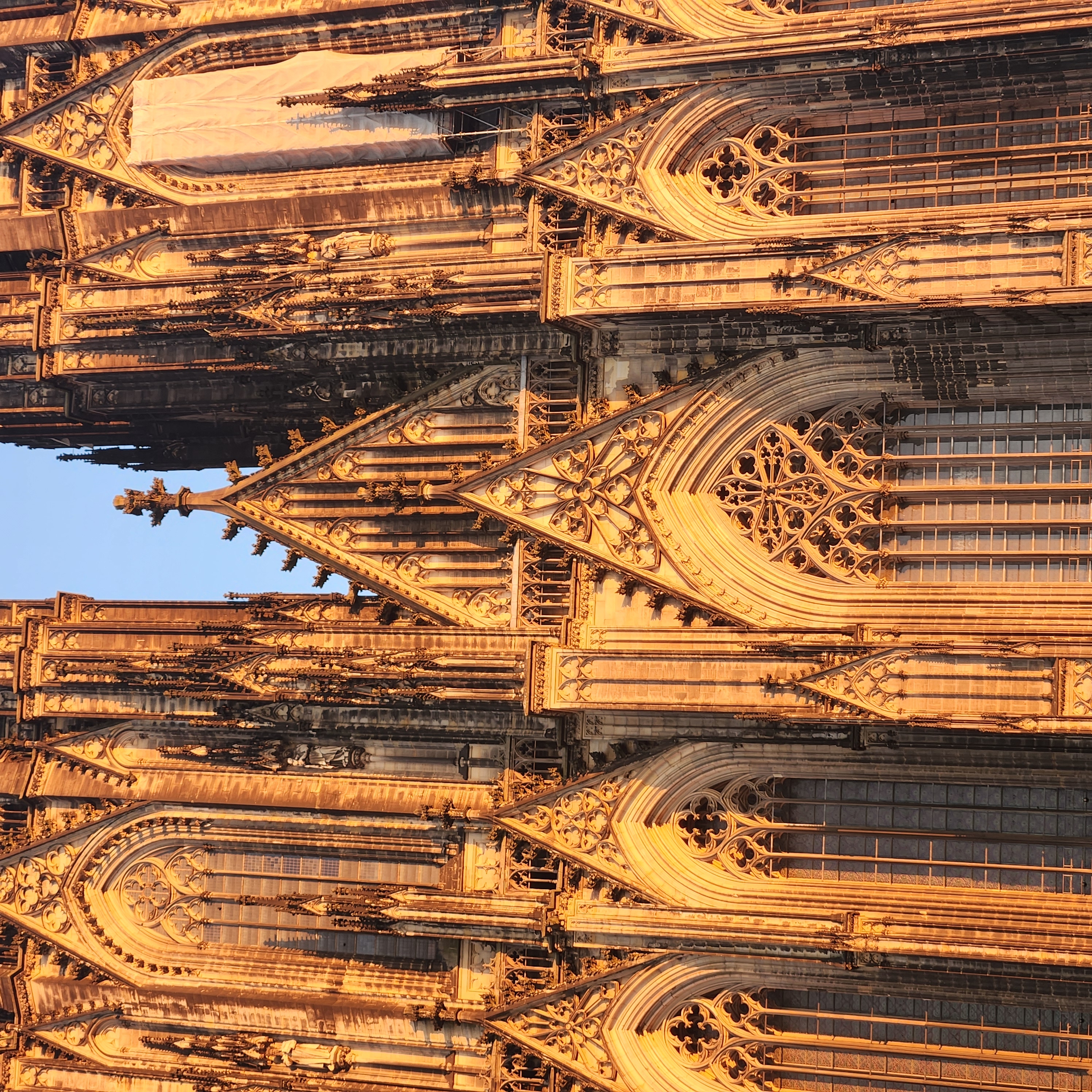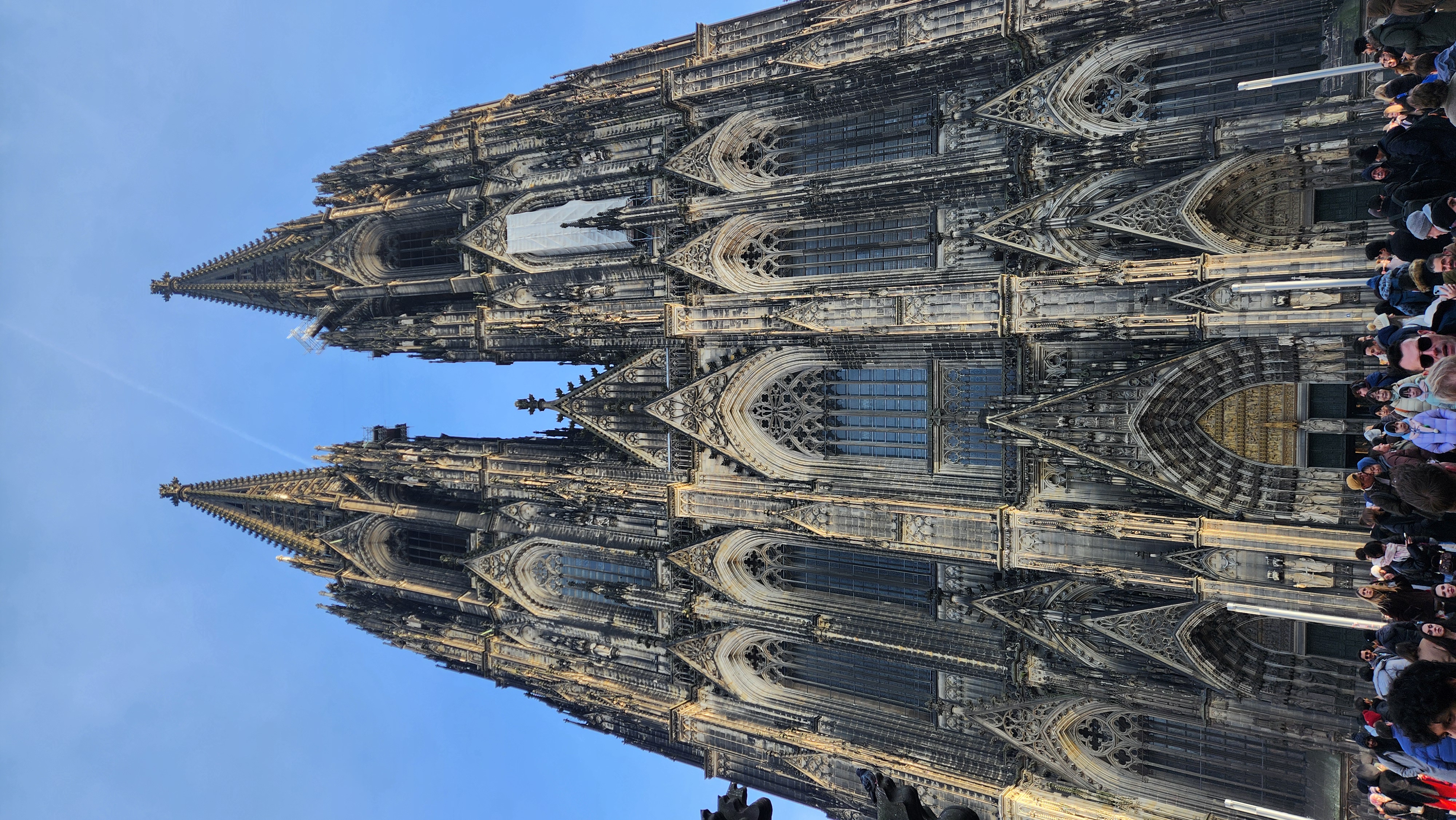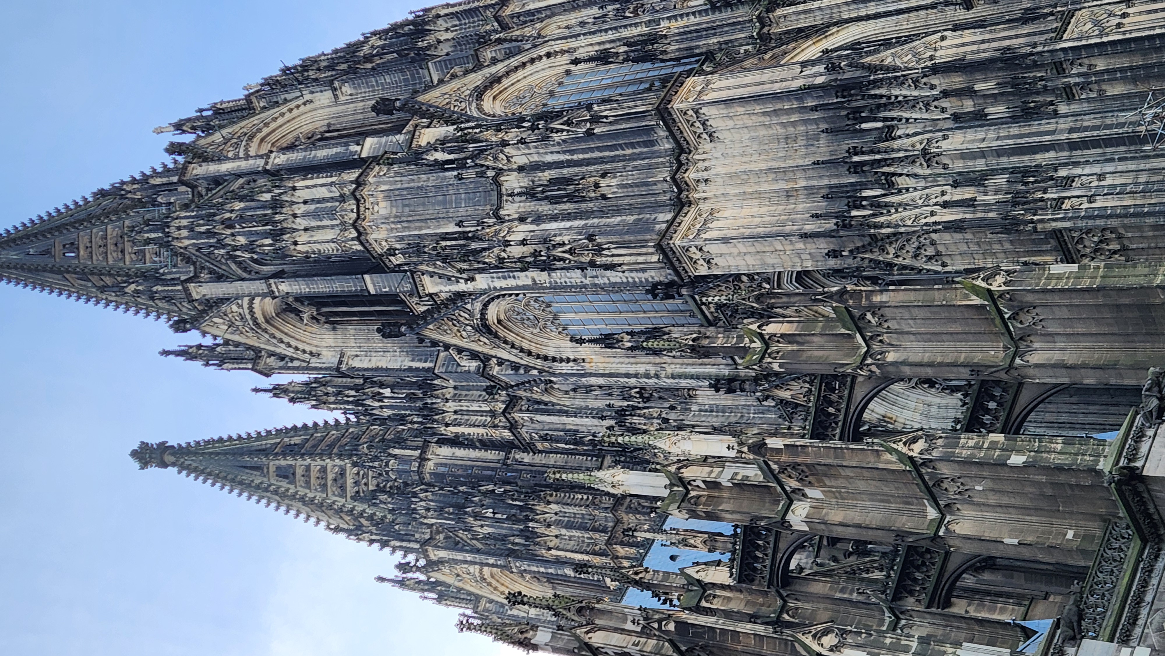 가까이서 보니 진짜 감탄이 나왔다. 지금까지 본 종교건축물 중 단연 가장 아름다웠다. 여행하면서 본 단일 건축물 중에서 가장 인상깊기도 했다. 아니 어떻게 이게 가능한거야... 라는 생각이 들었다. 진짜 말이 안되게 웅장하고 거대하다. 하늘을 찌를 듯하다는 말이 꼭 쾰른 대성당을 두고 하는 말인 것 같았다. 첨탑들이 너무너무 멋졌다.