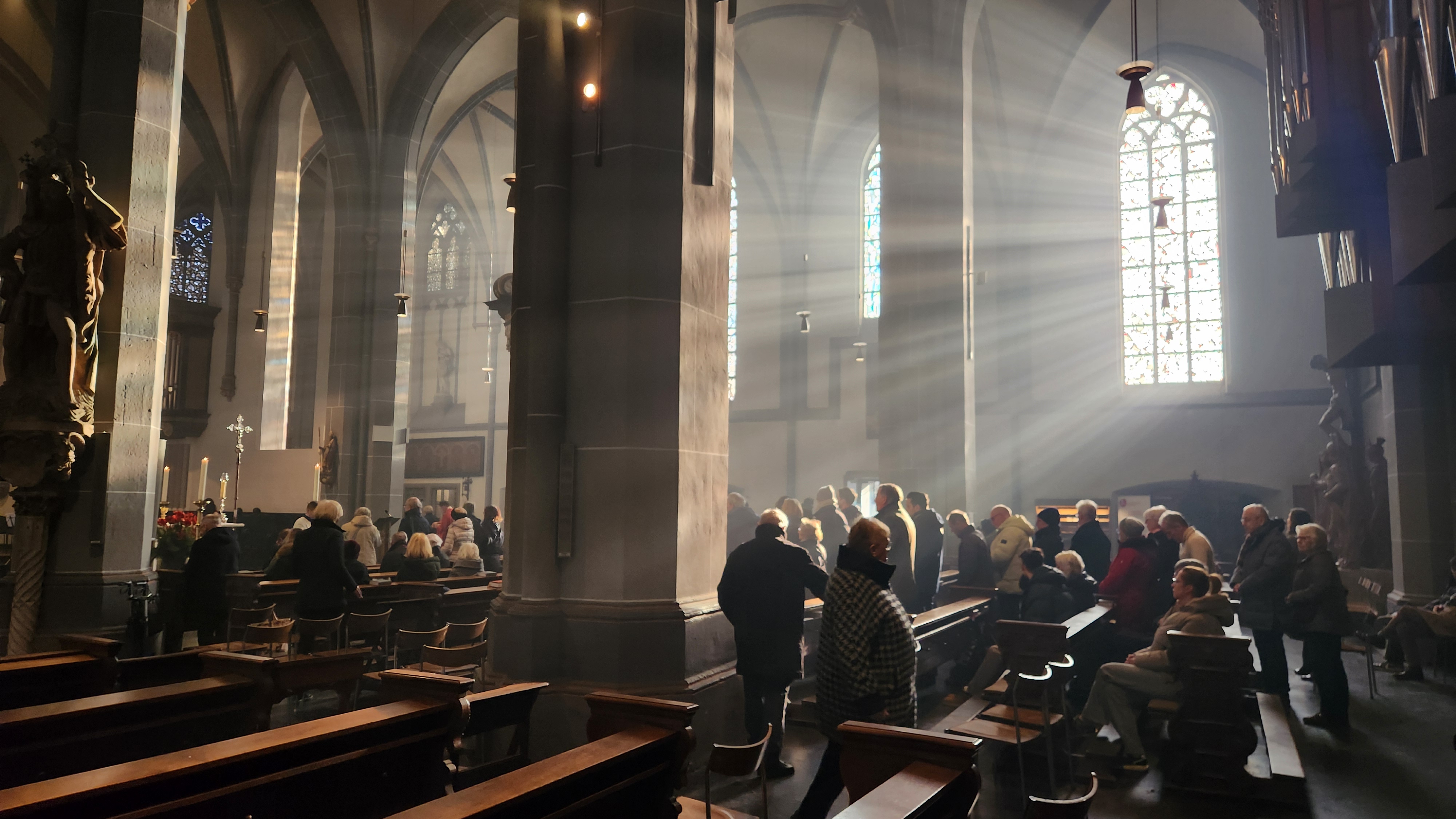 길을 따라 라인강변으로 나가니 성 람베라투스 교회가 나왔다. 전날 뒤셀도르프 여행 영상을 봤는데, 영상에서 추천했던 교회라 들어가 볼 생각이었다. 안에서 노래 소리가 들려왔는데 사람들이 들락날락 하길래 들어갔다.