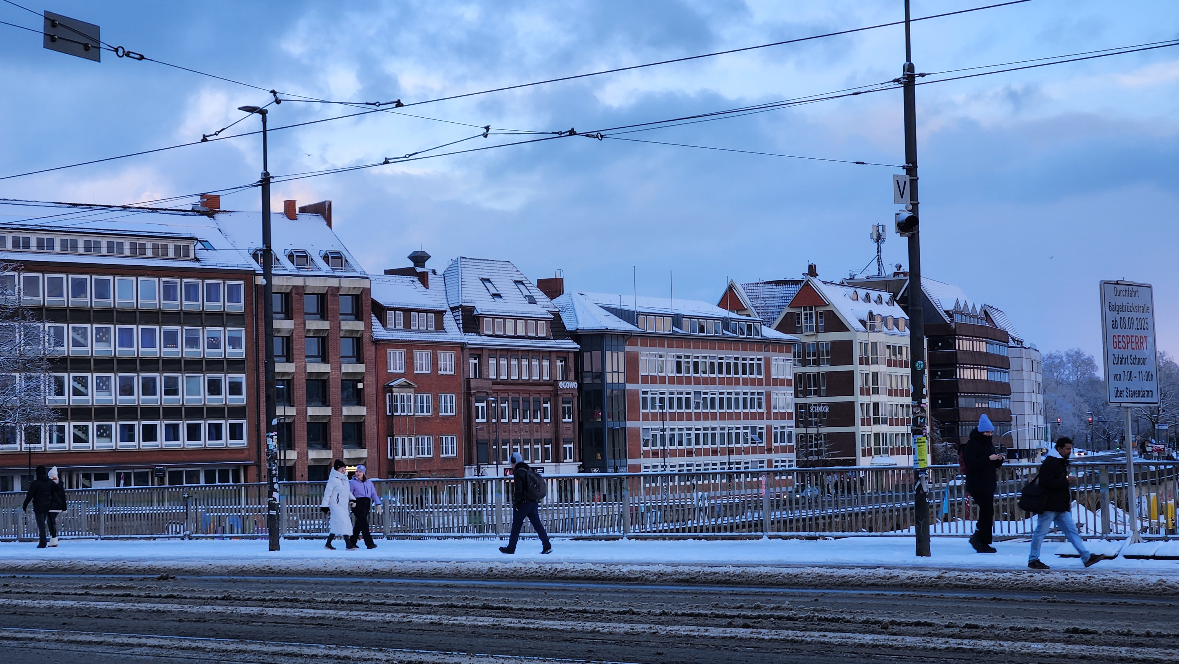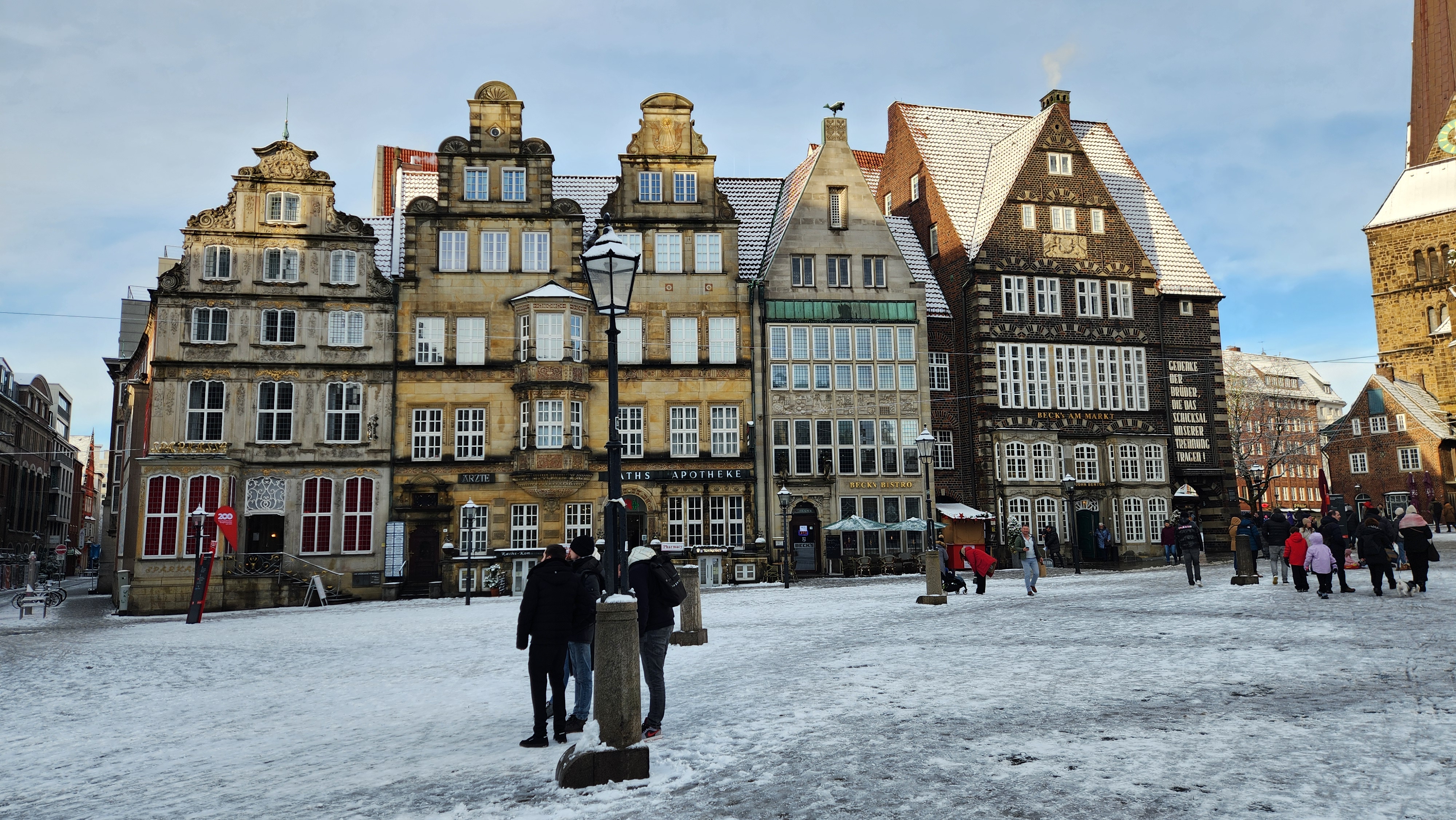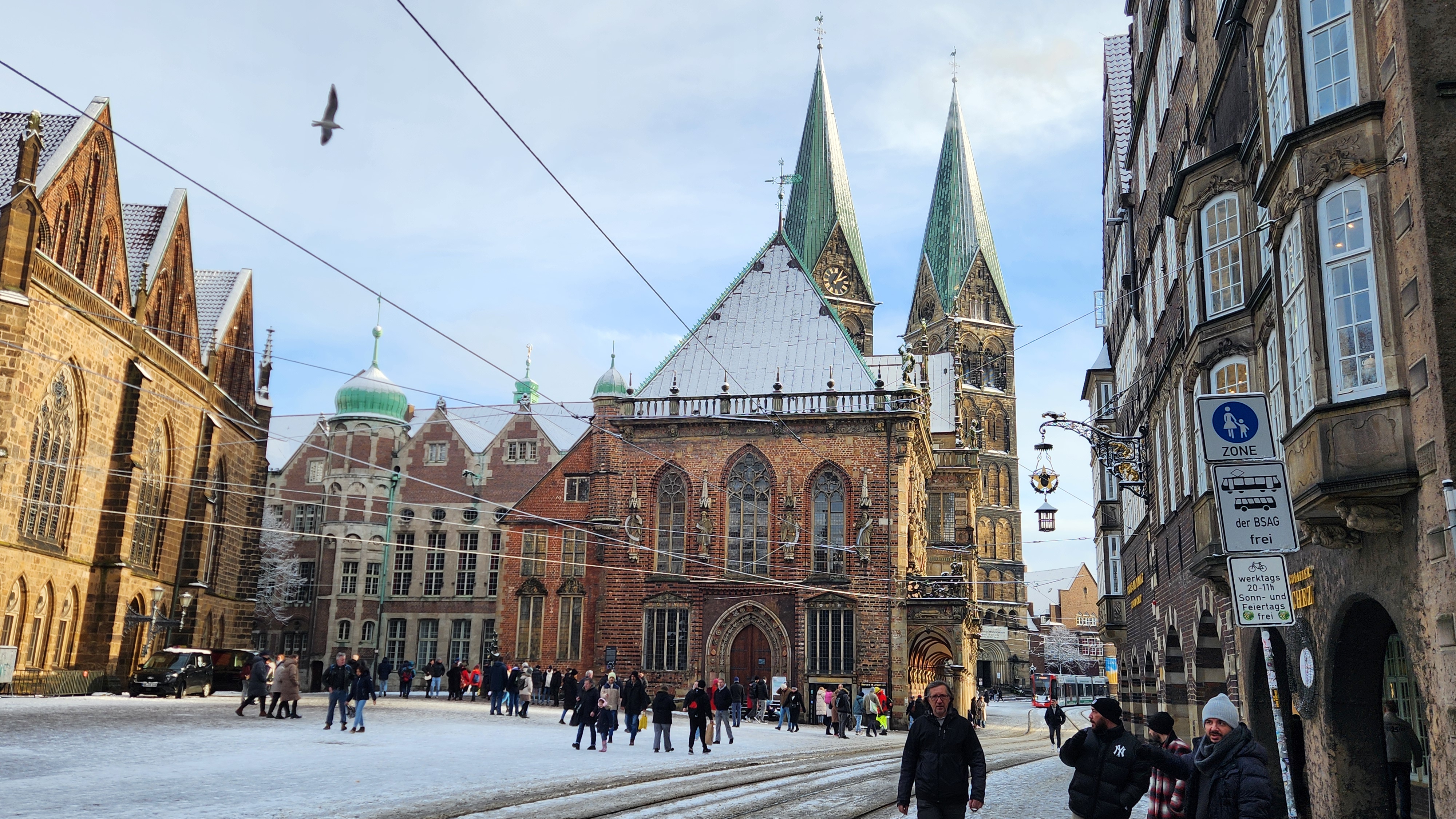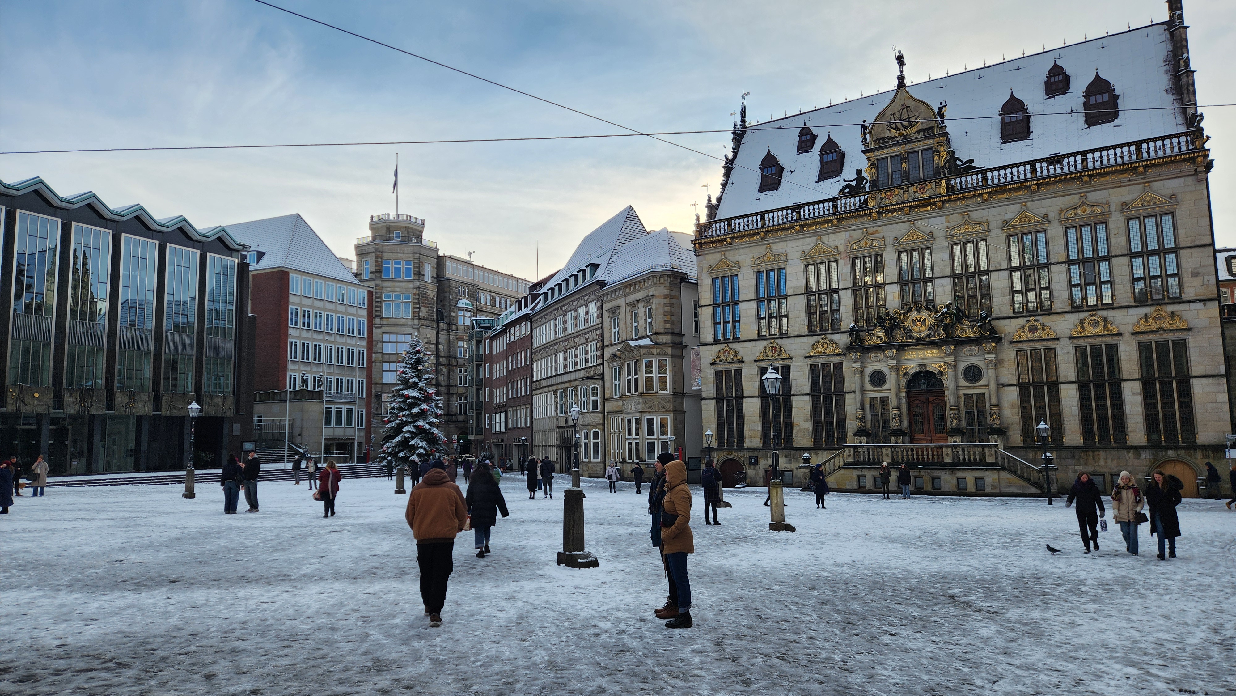 눈이 내리면 설경이 아름답지만, 가장 큰 문제는 더러워지는 길. 자동차나 트램이 다니는 길이 온통 회색빛으로 더러워져있다. 지나가다 자동차가 튀긴 흙탕물에 옷이 젖기라도 하면 대참사. 나는 언제나 옷을 빨고 다닐 수 있는 환경도 아니라 더 주의해야했다. 브레멘은 그렇게 큰 도시는 아니라 중앙역 근처 숙소에서 구시가지까지는 도보로 10분도 안걸리는데, 눈이 많이 와 길이 더러워진 상태여서 트램을 탔다.