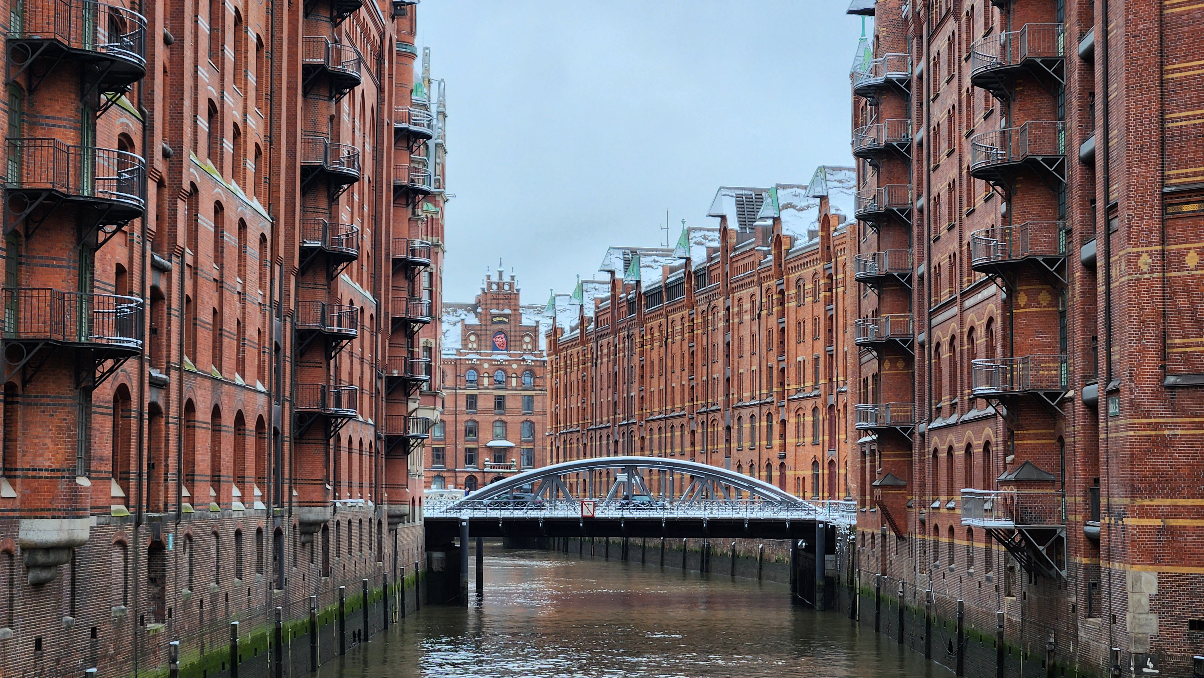 운하를 따라 커다란 나무가 줄지어 심겼고, 나뭇가지에 소복히 눈이 내려앉았다. 붉은 벽돌과 새하얀 눈이 너무 잘 어울렸다.