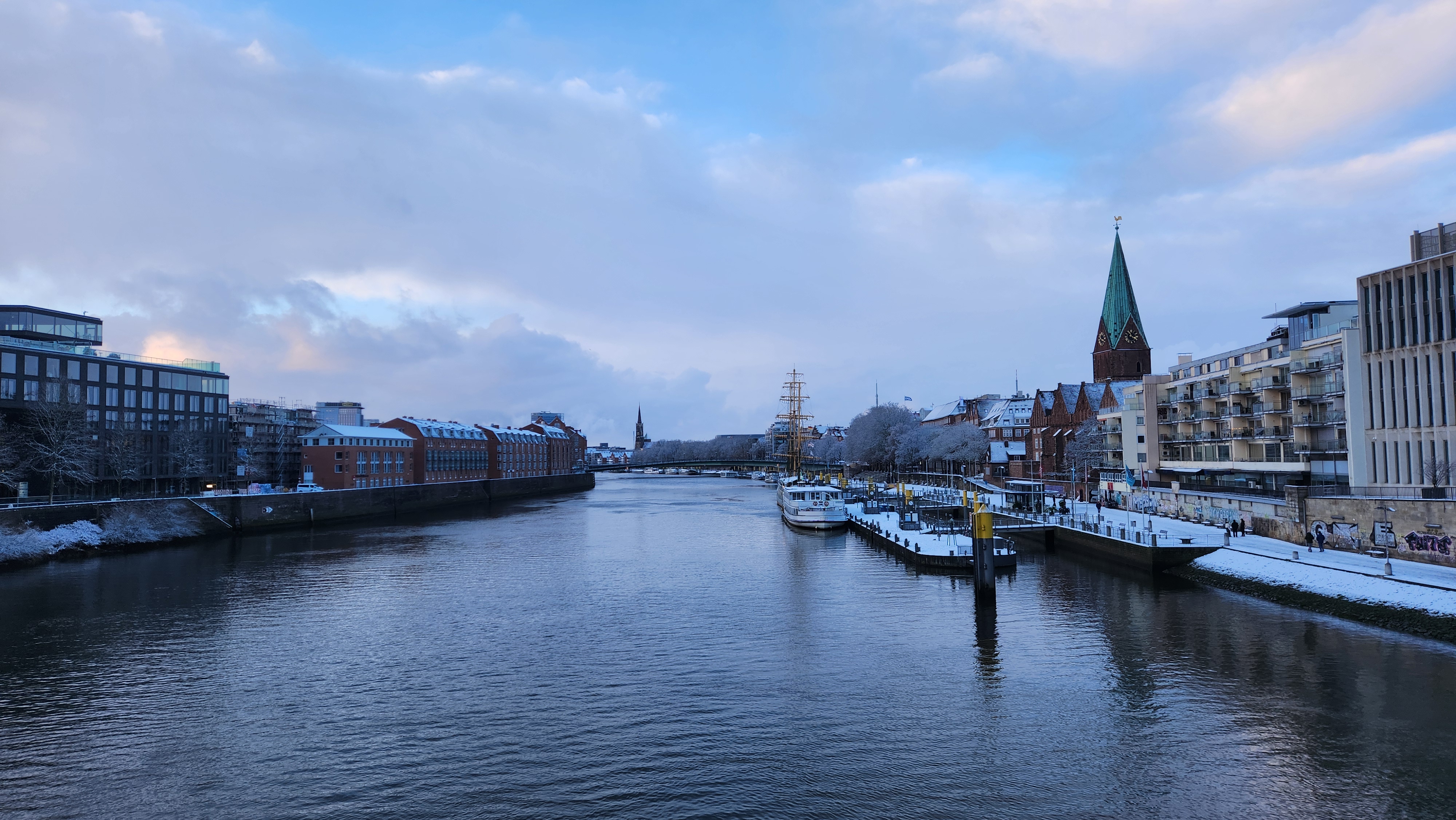 여행을 다니며 도시에서 설경을 보는 것은 브레멘이 처음이었다. 높은 산맥이나 산 아래 작은 마을에서 본 설경과는 또 다른 느낌으로 예뻤다. 하늘도 맑아 더 아름다웠던 것 같다.