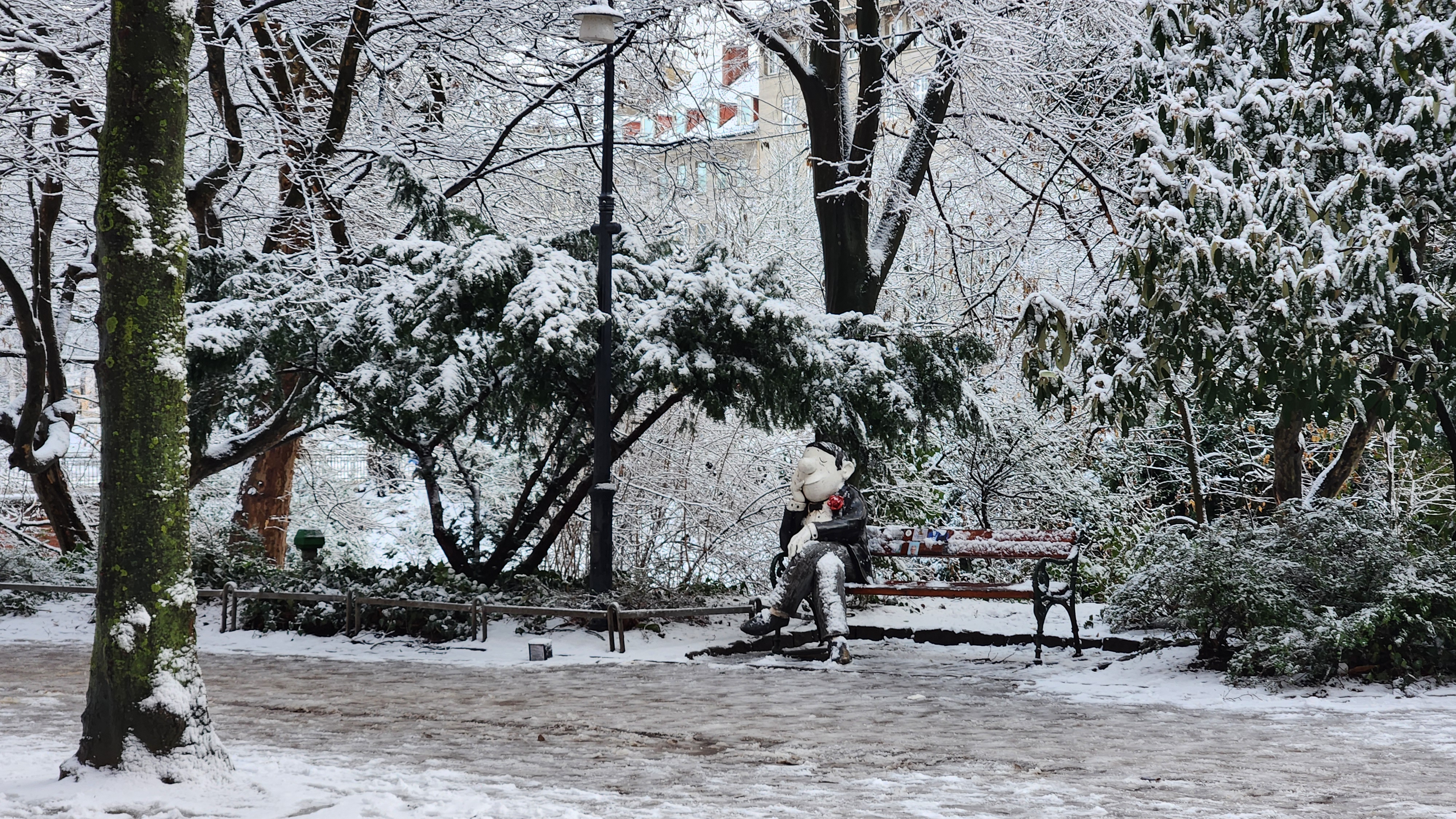 숙소로 가는 길에 하얗게 쌓인 눈이 더럽혀지지 않은 공원이 있었다.