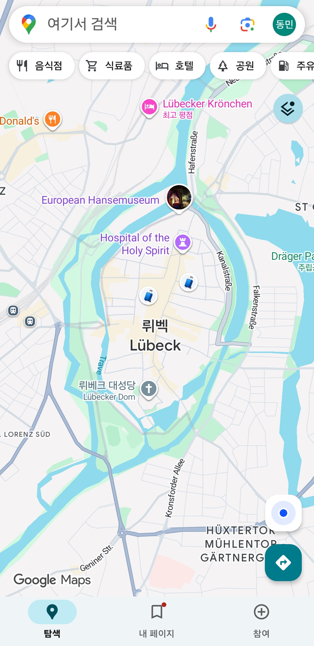 뤼벡은 큰 도시가 아니라 중앙역에서 구도심(Altstadt)까지 걸어서 10~20분이면 간다.