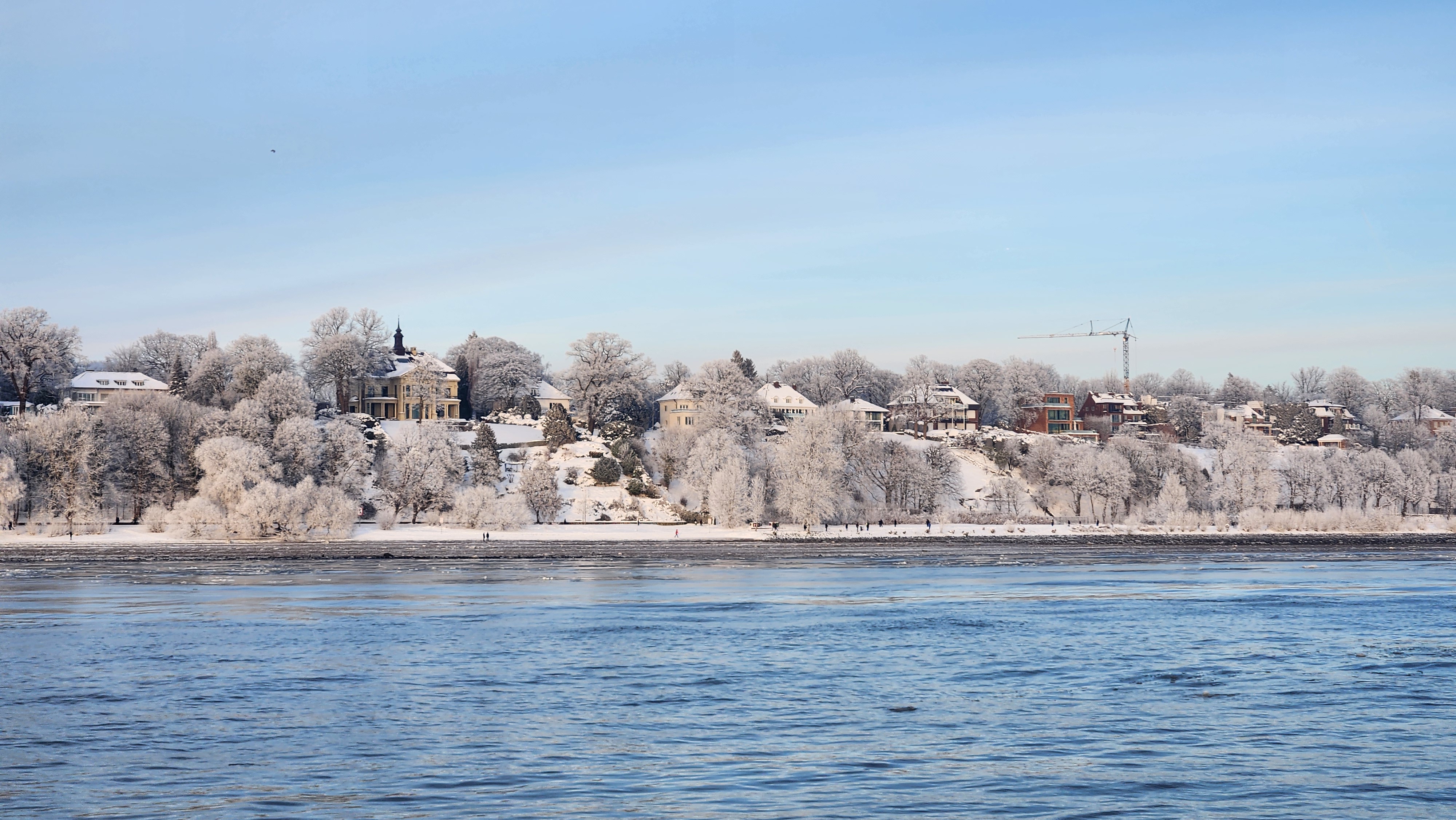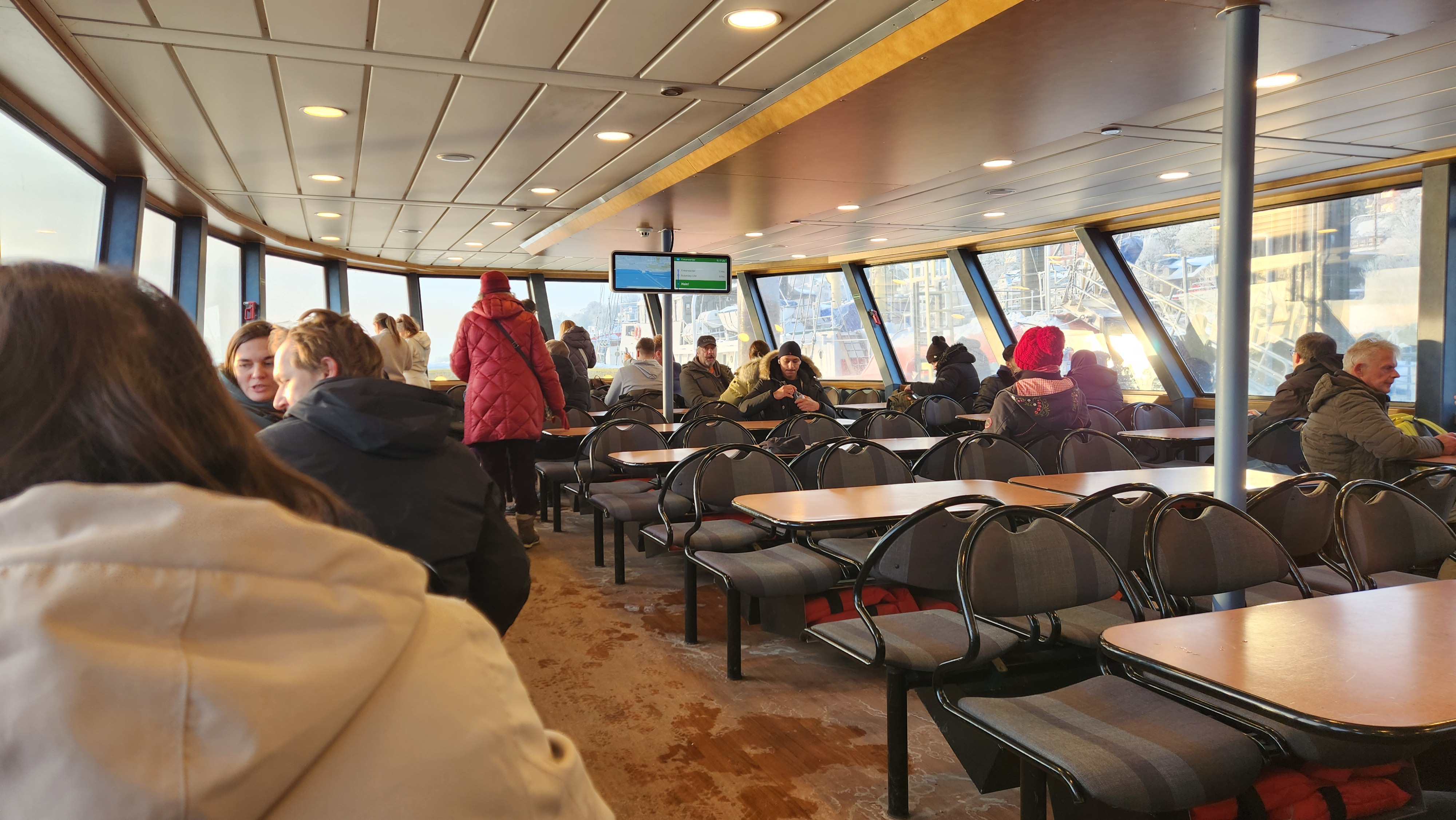 페리에는 조금은 비좁아도 갑판에서 밖을 구경할 수도 있었다. 가지가 눈으로 뒤덮힌 나무들과 겨울의 서늘한 하늘, 푸른 강물이 너무 잘 어울려서 아름다웠다.