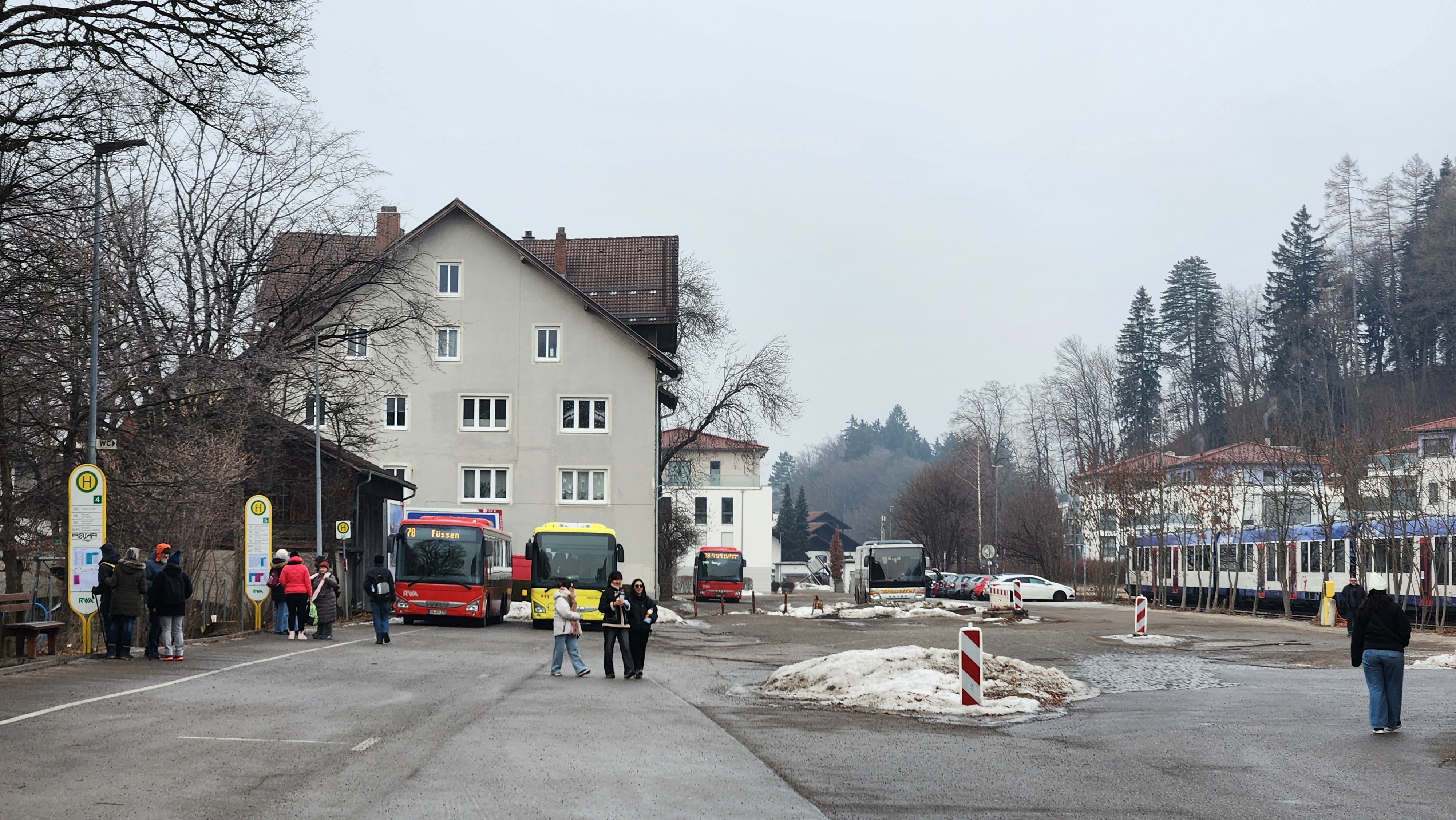 퓌센 중앙역에 내려 밖으로 나오면 이렇게 버스들이 대기하고 있는 차고지가 있다.