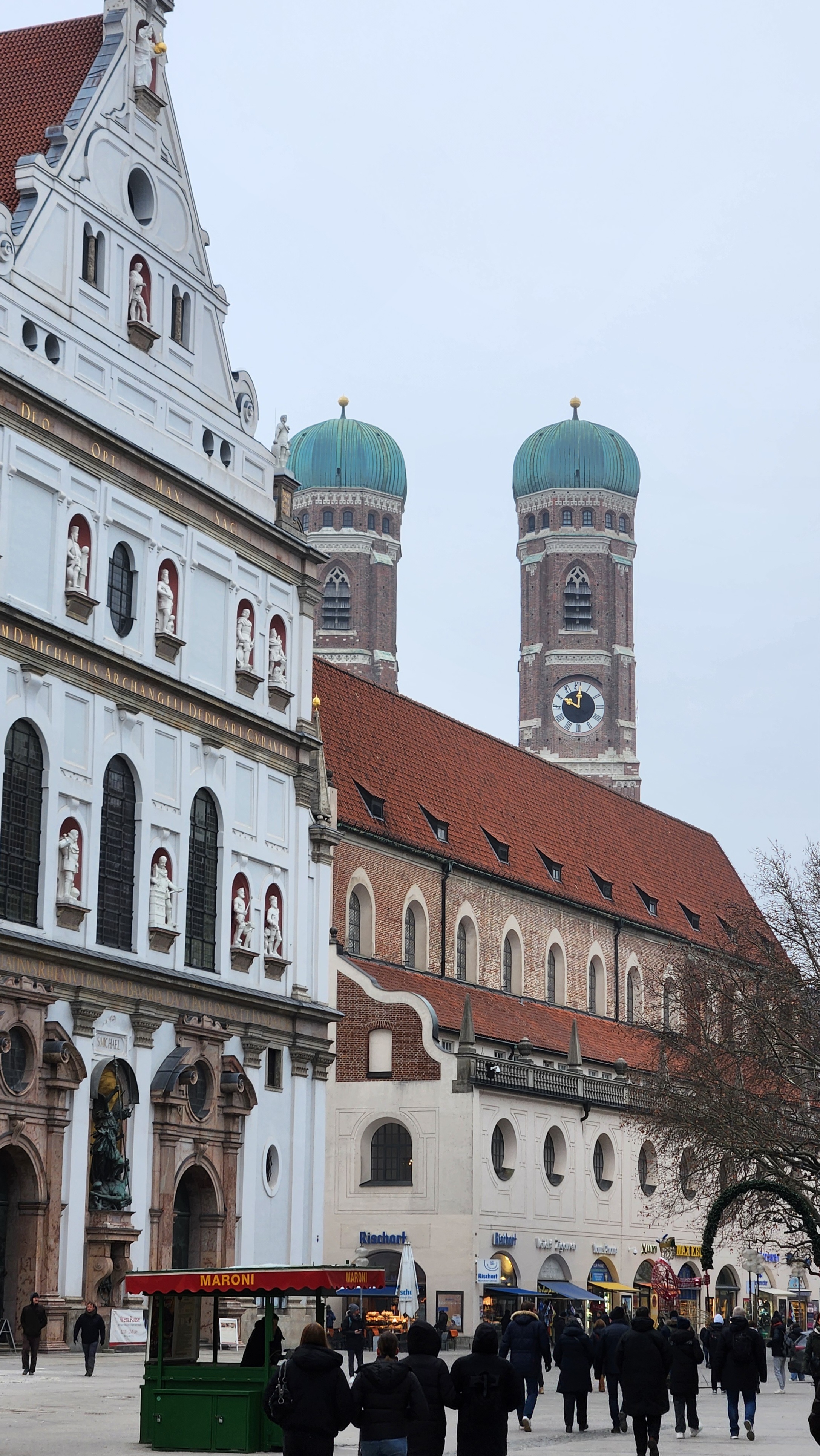 위 사진 가운데, 둥근 두 개의 탑은 뮌헨의 성모성당(프라우엔 키르헤, Frauenkirche)이고 그 앞의 흰색 건물은 성 안드레 교회라고 한다.